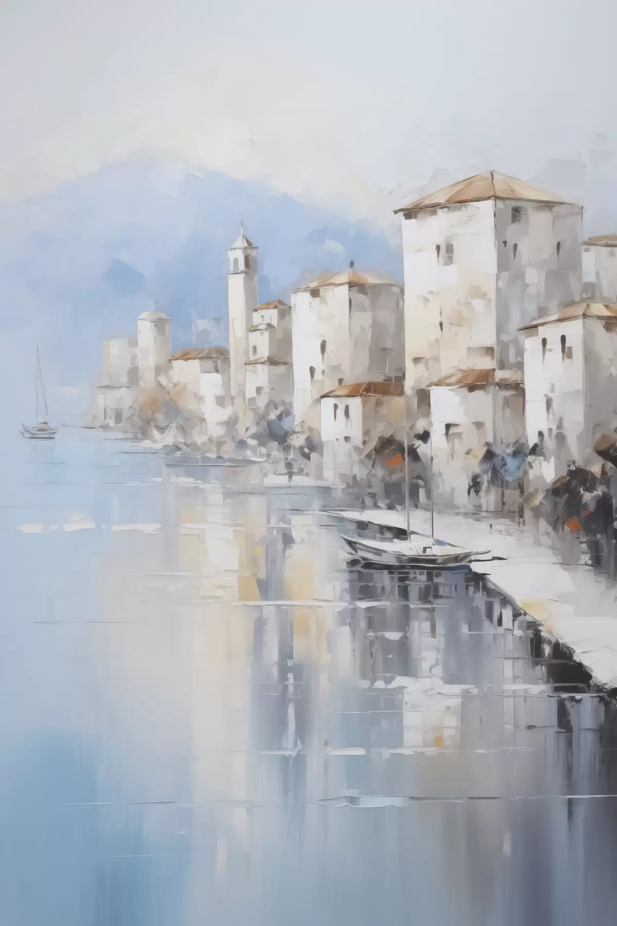 murales de pared Casas abstractas junto a la bahía, imitación de pintura. s46673