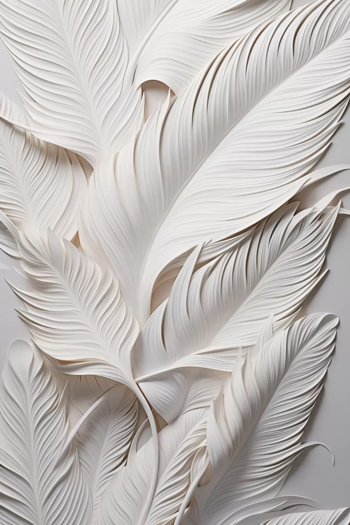 murales de pared Hojas blancas con detalles intrincados, creando un efecto texturizado y en capas, arte minimalista. s46706