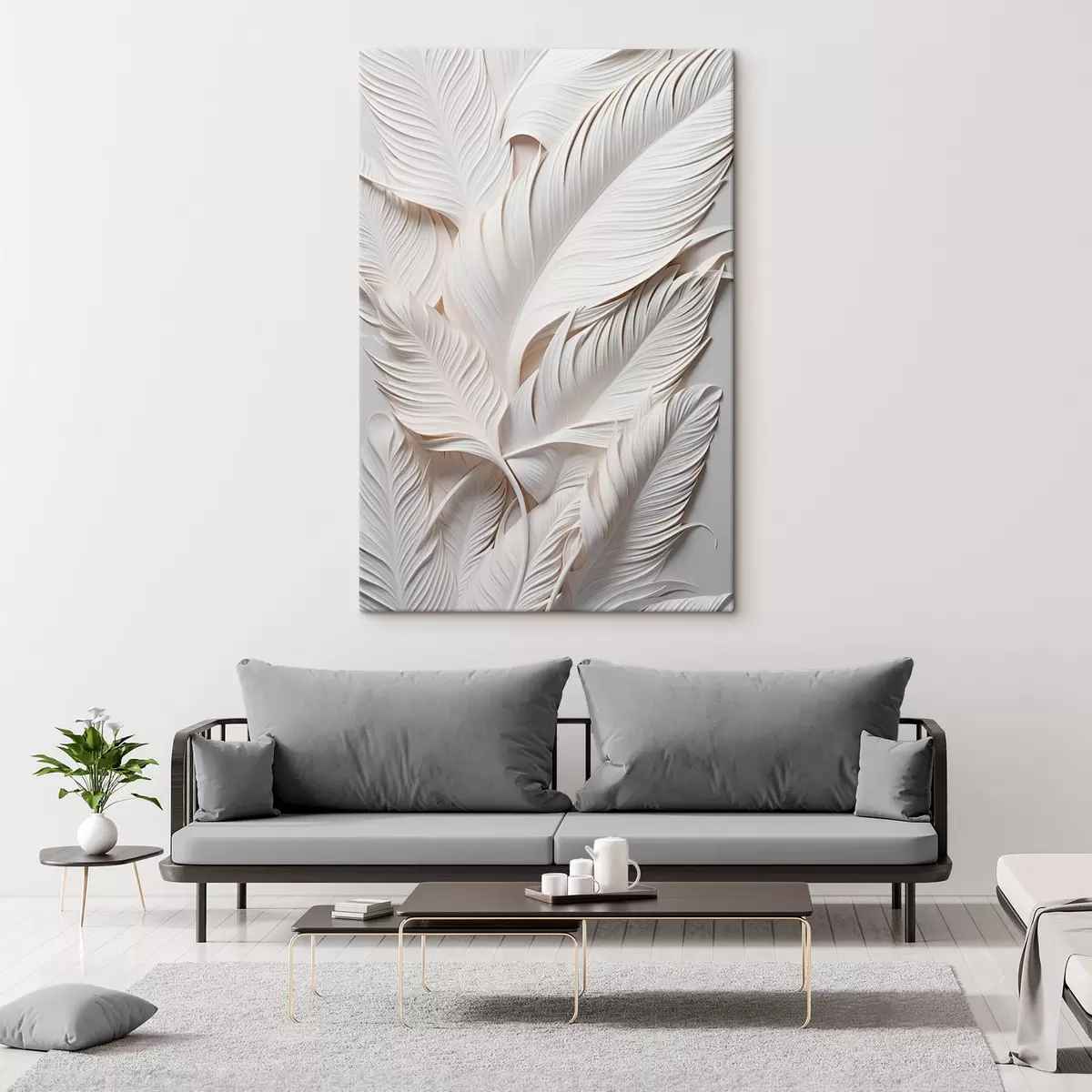 Cuadros Hojas blancas con detalles intrincados, creando un efecto texturizado y en capas, arte minimalista. Nr s46706