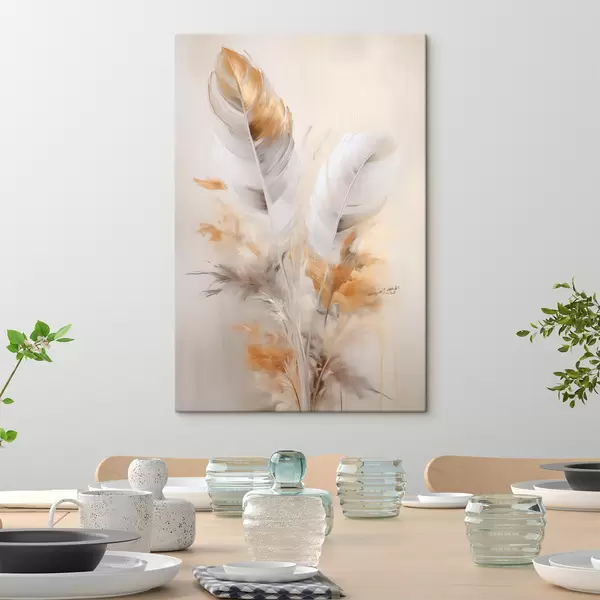 Cuadros Plumas abstractas, rodeadas de plumas beige y marrones, suaves y delicadas, sobre un fondo beige claro. Nr s46711
