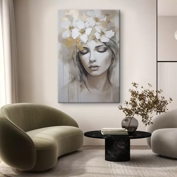 Cuadros Retrato abstracto de una niña con flores, imitación de pintura. Nr s46756