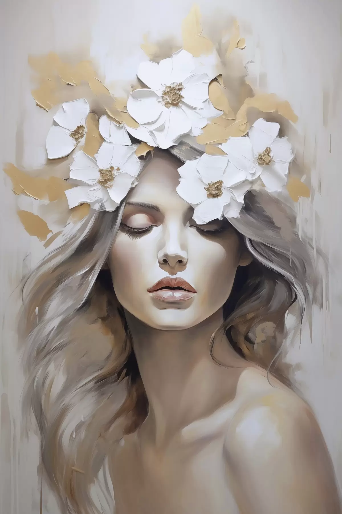 Cuadros Retrato abstracto de una chica con flores Nr s46757