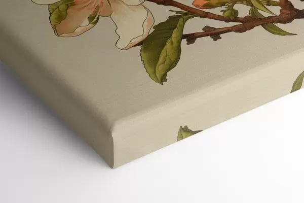 Cuadros Rama florecida con flores blancas sobre fondo beige al estilo de una ilustración clásica. Nr s46923