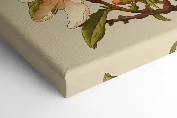 Cuadros Rama florecida con flores blancas sobre fondo beige al estilo de una ilustración clásica. Nr s46923