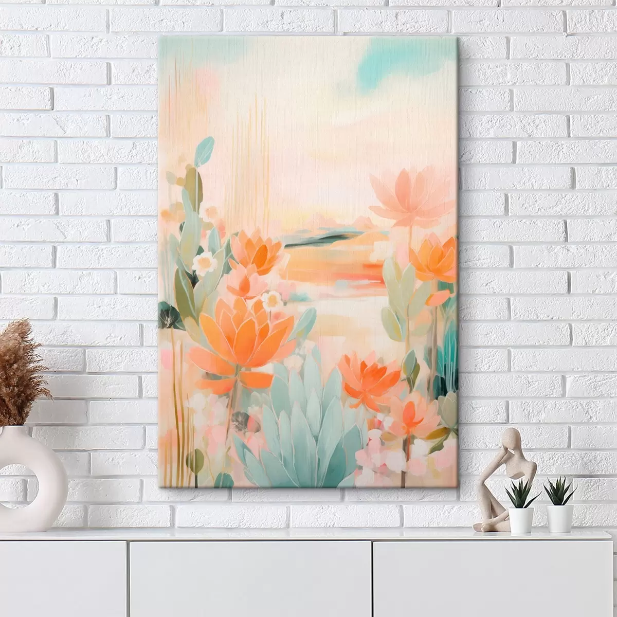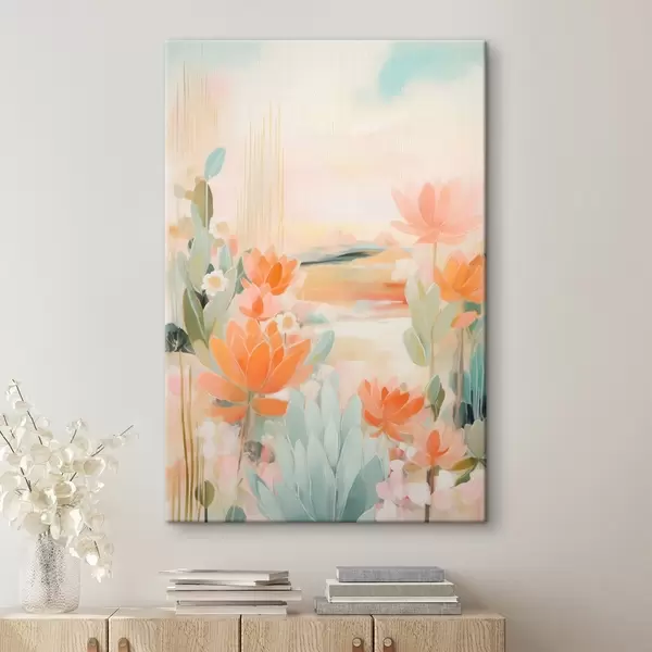 Cuadros Paisaje floral en tonos rosas y azules con un estilo pictórico contemporáneo. Nr s46931