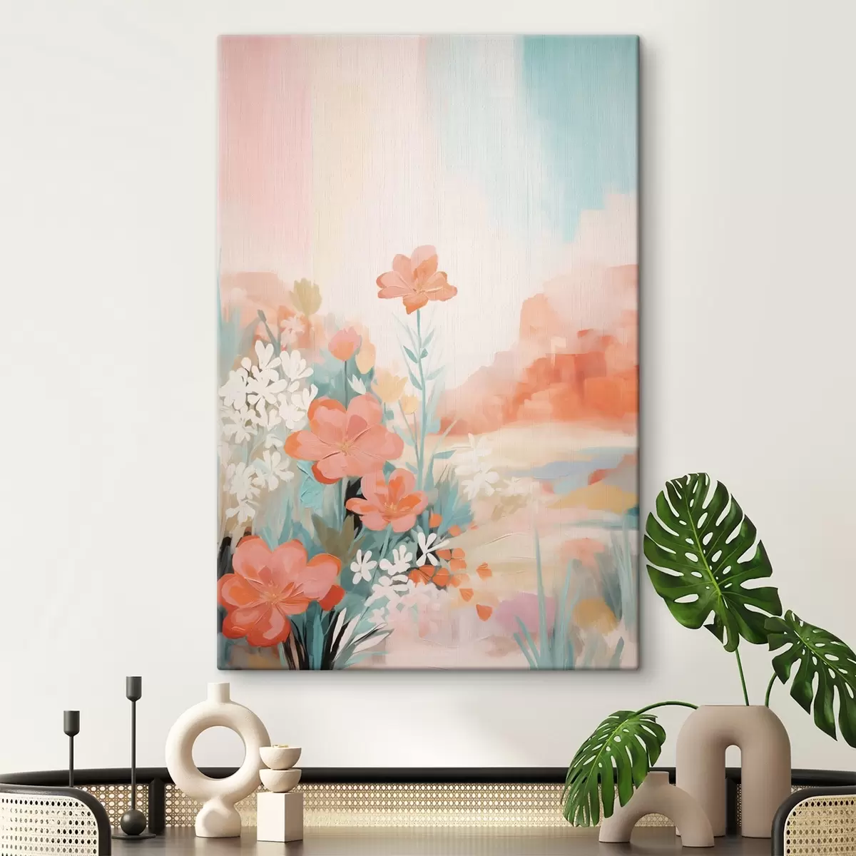Cuadros Paisaje floral abstracto en una paleta de colores rosa y azul. Nr s46932