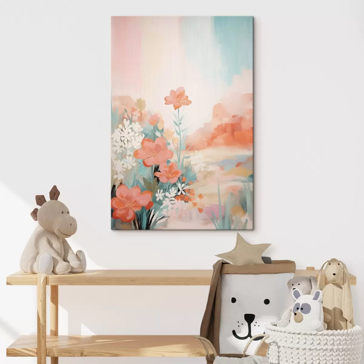 murales de pared Paisaje floral abstracto en una paleta de colores rosa y azul. s46932