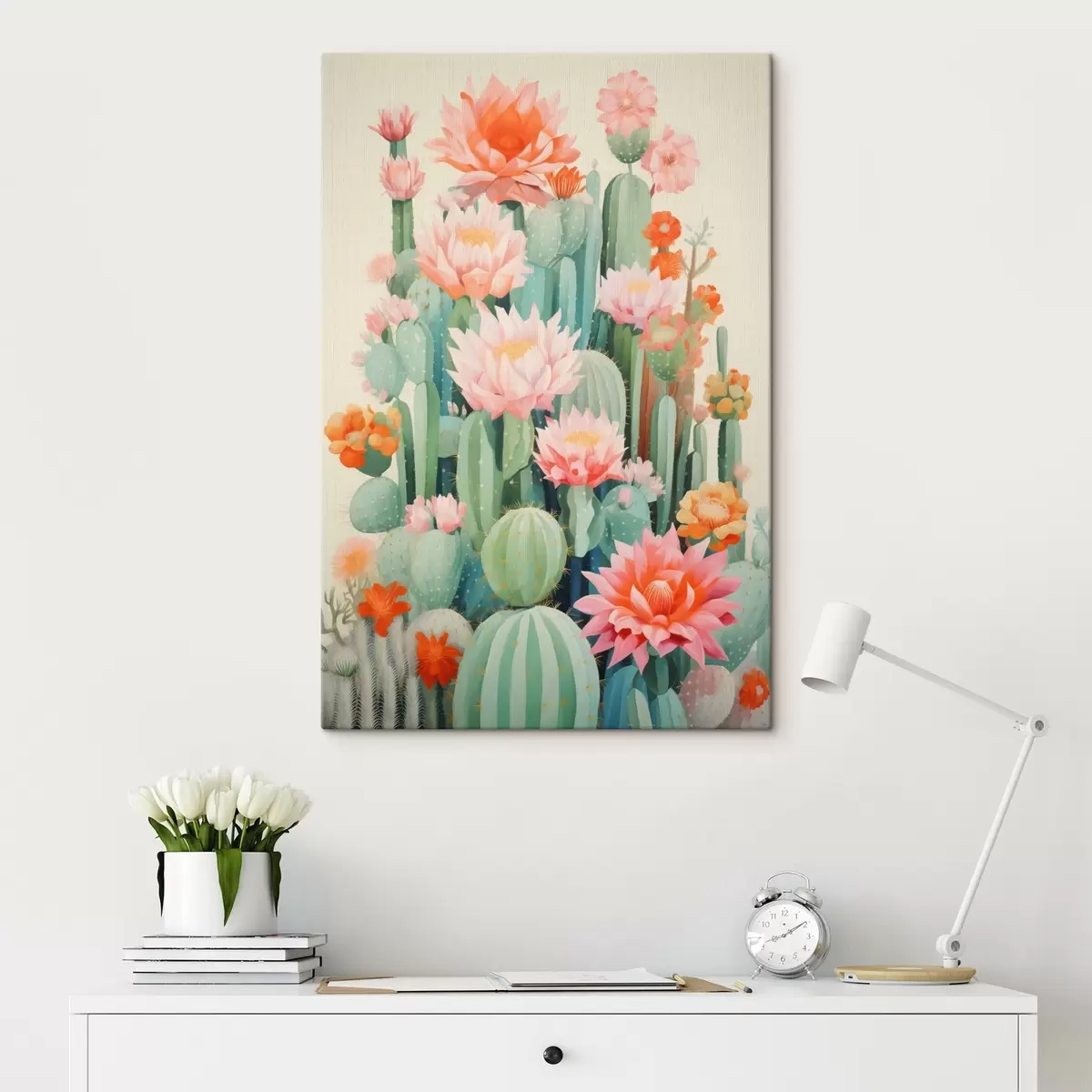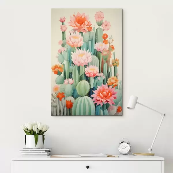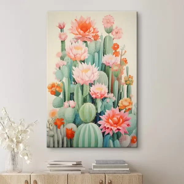 Cuadros Cactus en flor con flores rosas y naranjas en estilo ilustrativo. Nr s46934
