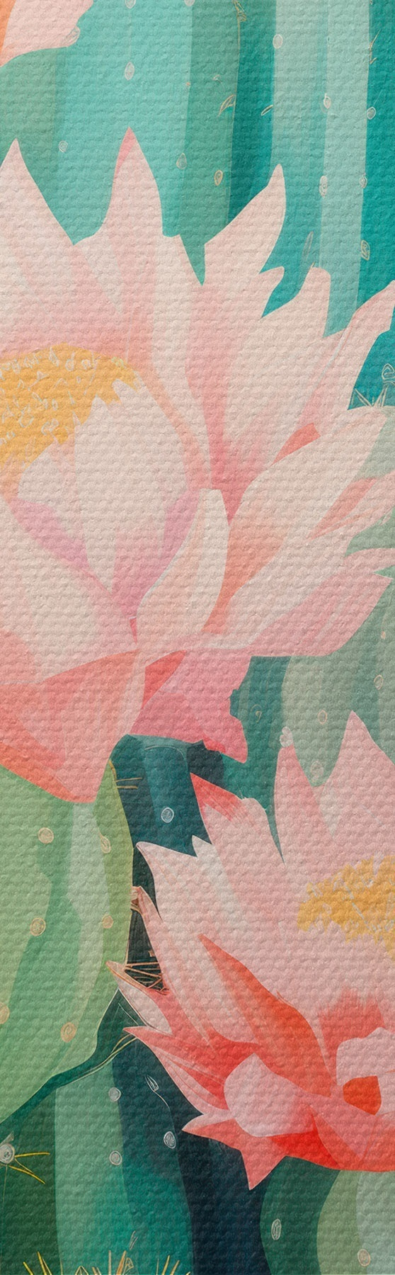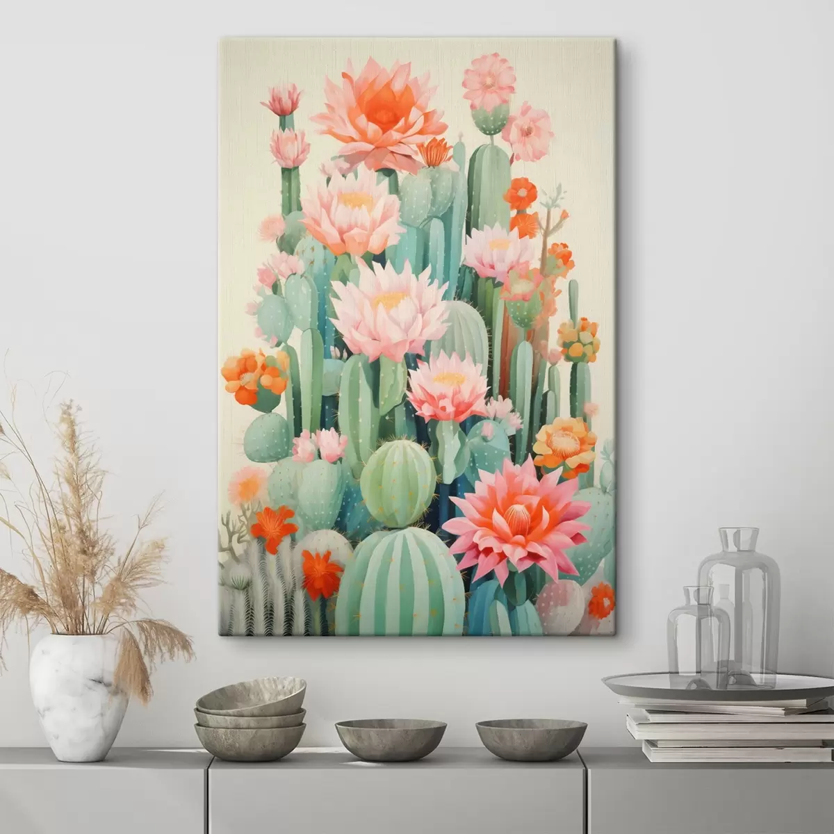 murales de pared Cactus en flor con flores rosas y naranjas en estilo ilustrativo. s46934