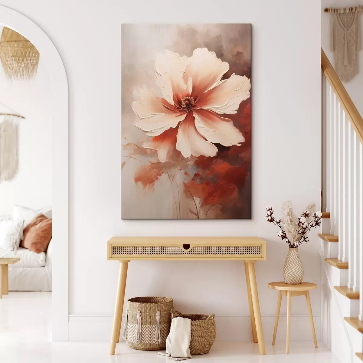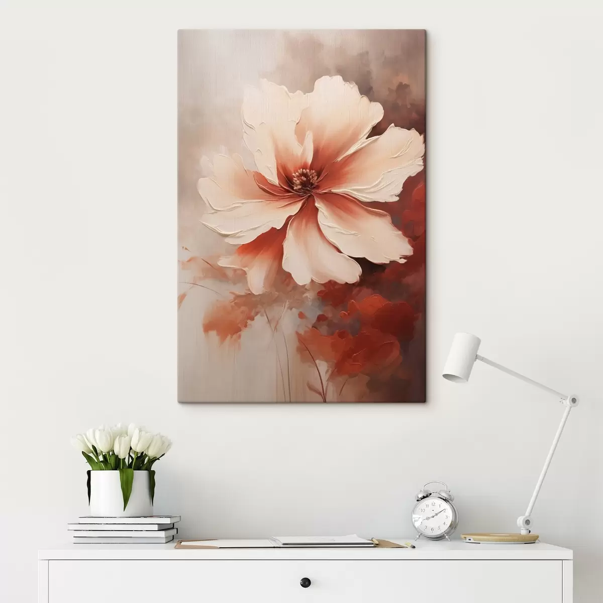 Cuadros Primer plano de una flor de coral blanco sobre un fondo difuminado, al estilo de una pintura al óleo. Nr s46939