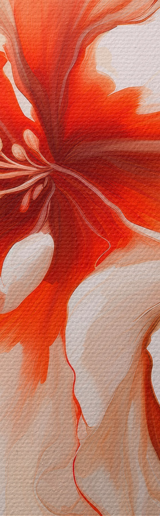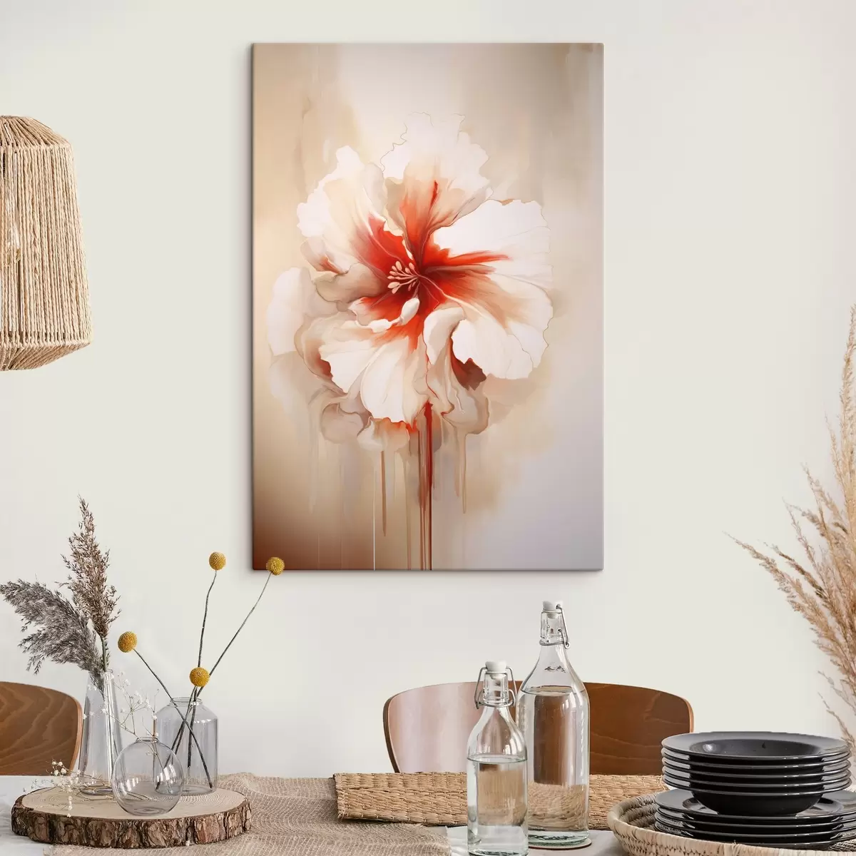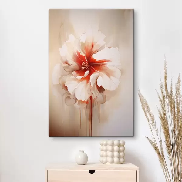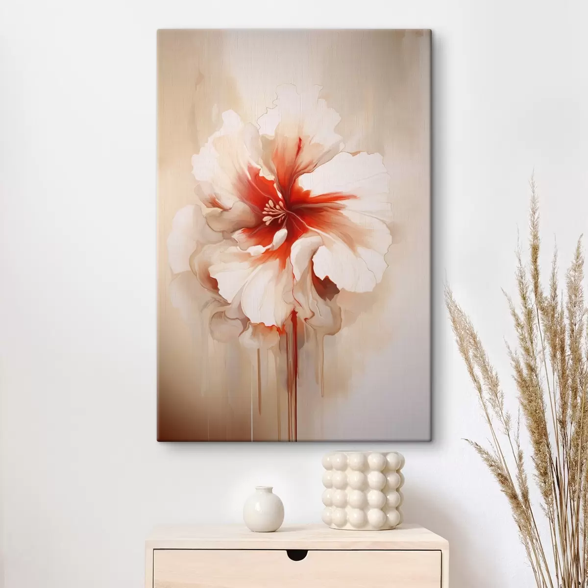 Cuadros Flor blanca y roja con pétalos semitransparentes y gotas de pintura fluidas. Nr s46940