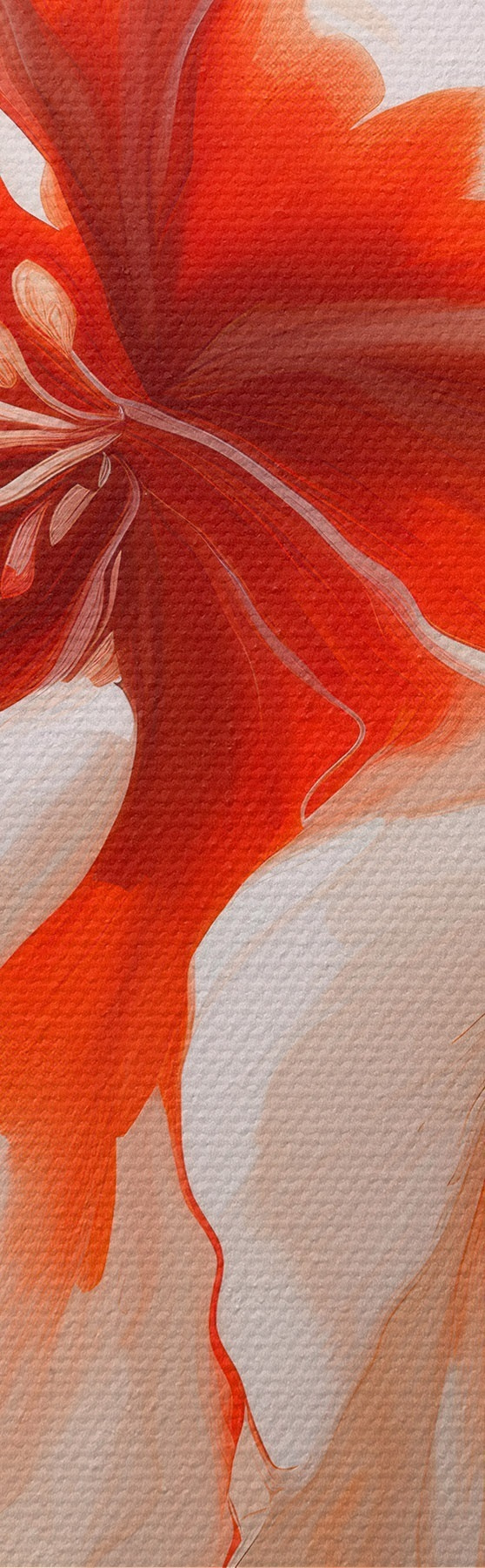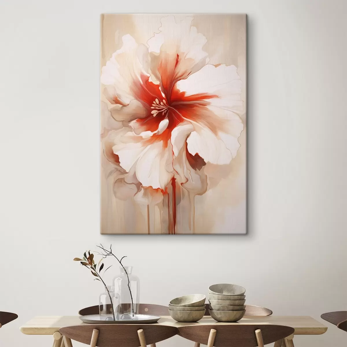 murales de pared Primer plano de una flor blanca y roja con pétalos semitransparentes y gotas de pintura fluidas. s46941