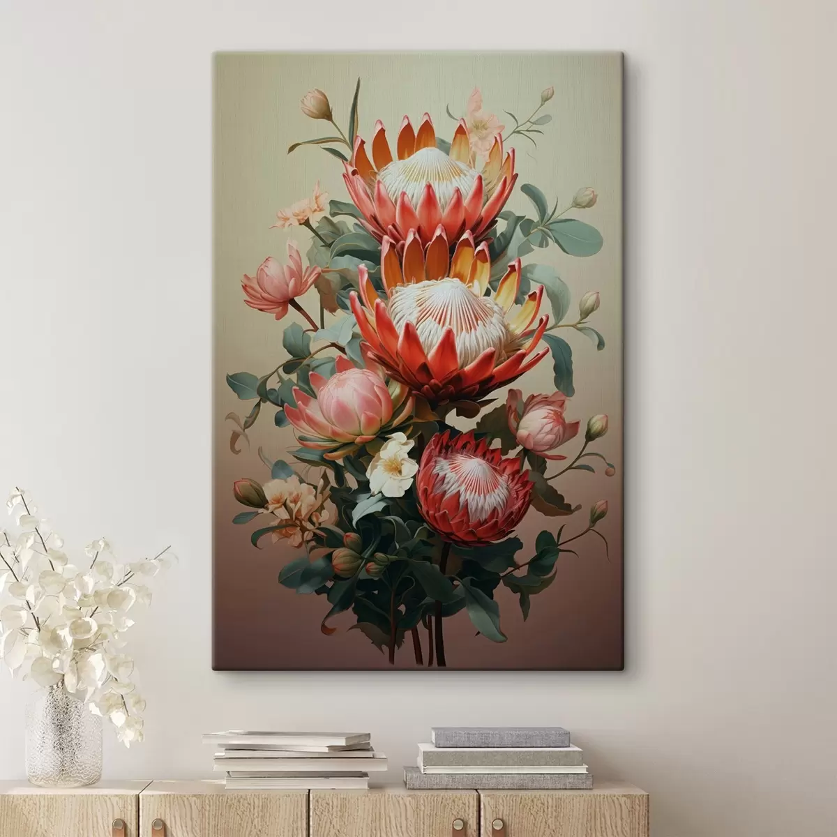 Cuadros Composición con grandes proteas en un estilo pictórico digital moderno. Nr s46947