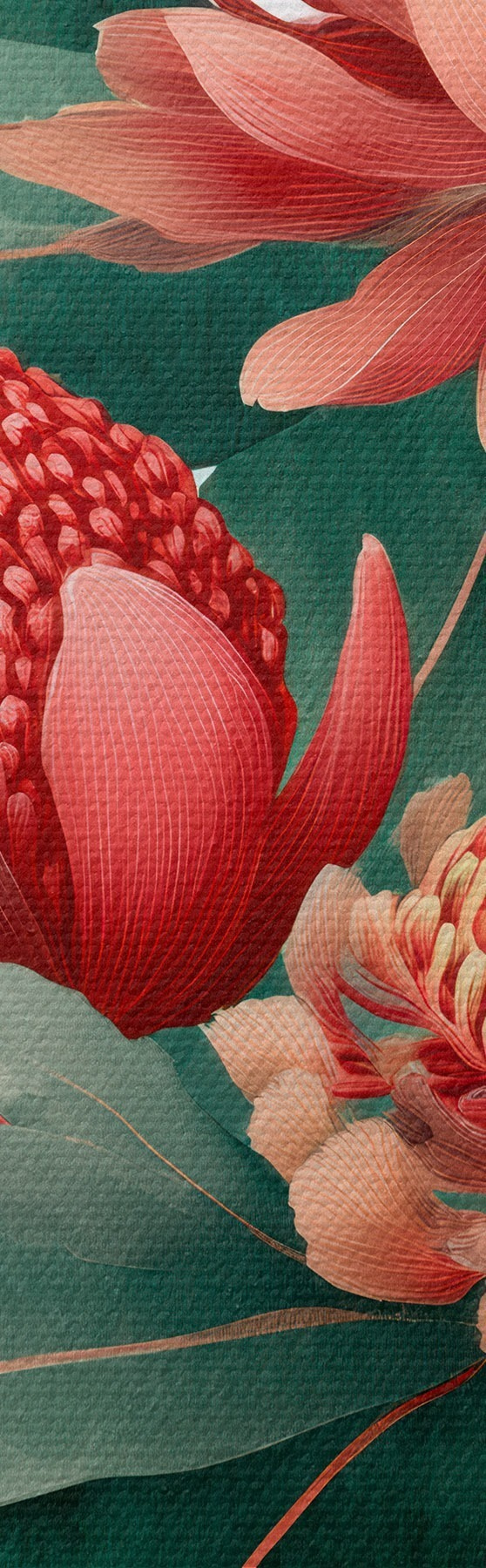 murales de pared Composición floral con grandes proteas y eucalipto en un estilo moderno de ilustración digital. s46955