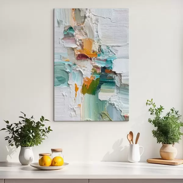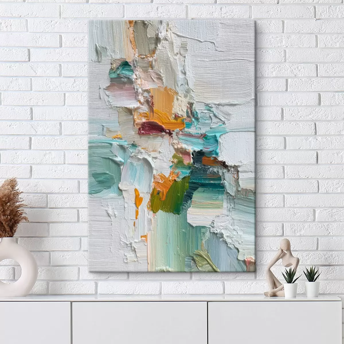 Cuadros Composición con detalles en turquesa y naranja al estilo de la pintura al óleo. Nr s46958