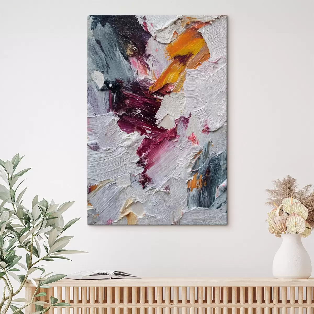 Cuadros Composición abstracta con intensas pinceladas de color cereza y naranja al estilo de la pintura al óleo. Nr s46959