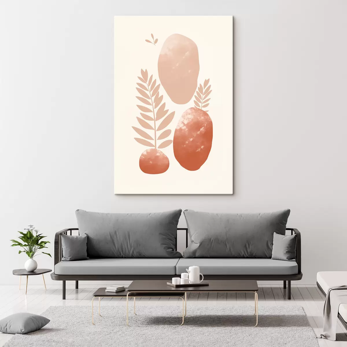 Cuadros Formas abstractas, piedras y hojas con textura en tonos melocotón y terracota apagados, minimalistas, fondo crema. Nr s47012