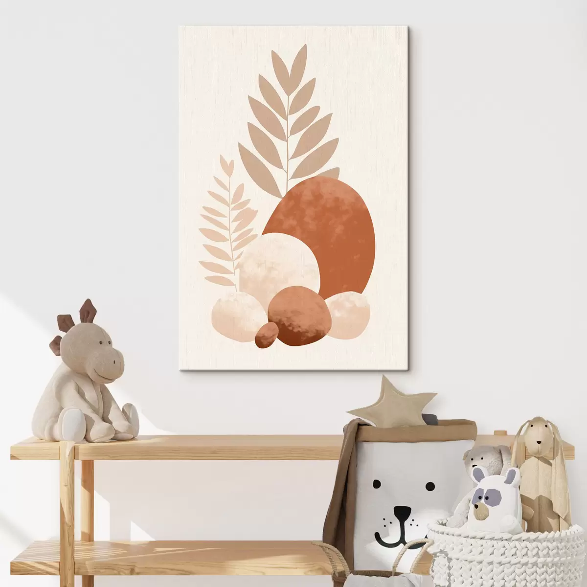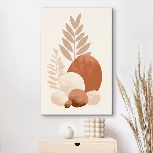 Cuadros Formas abstractas, piedras y hojas con textura en tonos melocotón y terracota apagados, minimalistas, fondo crema. Nr s47013