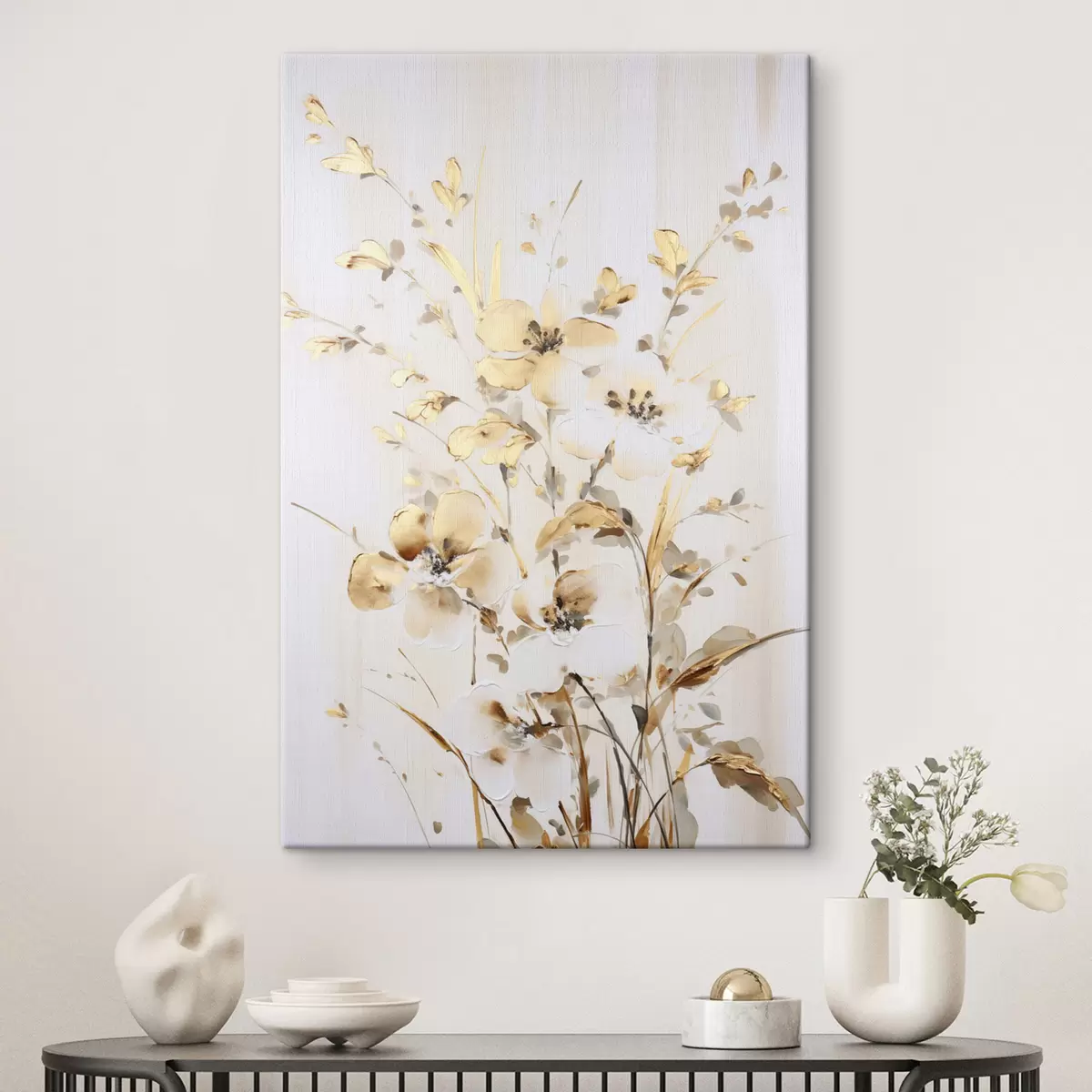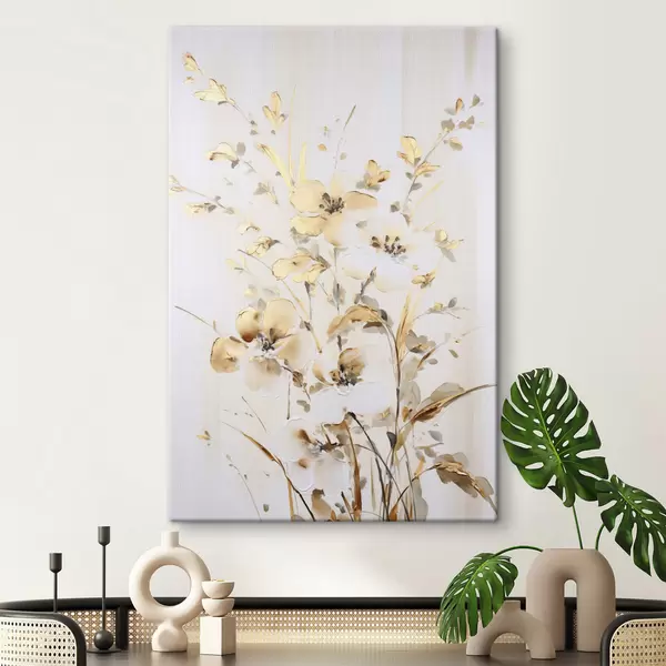 Cuadros Flores y hojas amarillas con textura sobre fondo blanco, con delicadas pinceladas. Nr s47017