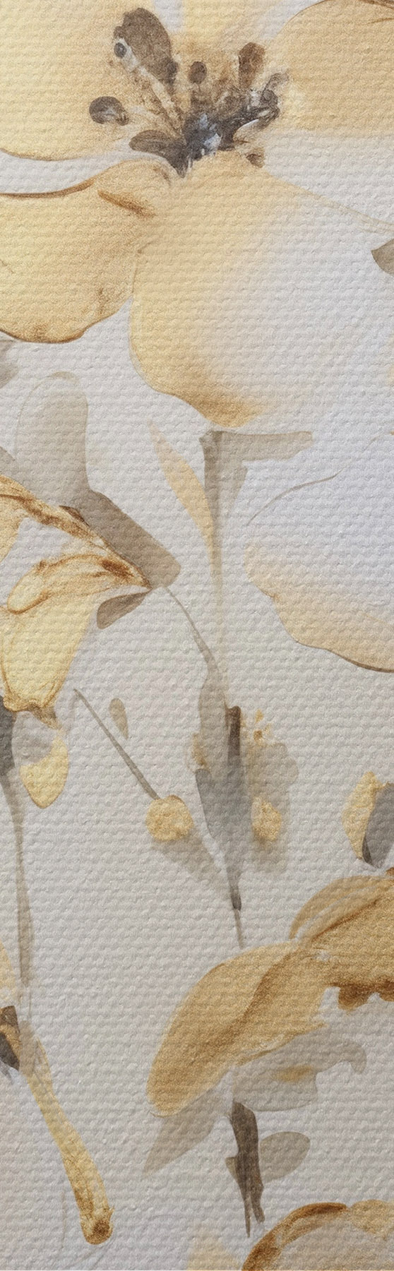 murales de pared Flores y hojas amarillas con textura sobre fondo blanco, con delicadas pinceladas. s47017