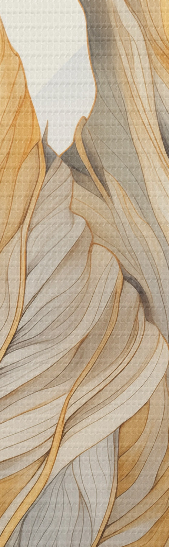 murales de pared Hojas abstractas grandes, amarillas y marrones con detalles intrincados, sobre un paisaje montañoso. s47023