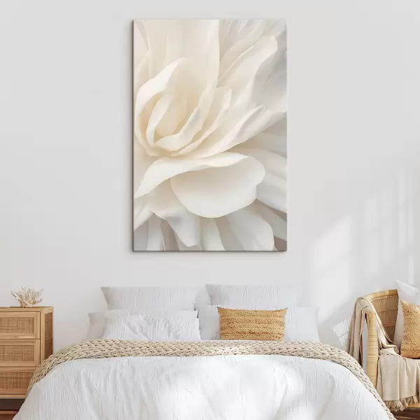 Cuadros Flor abstracta blanca con pétalos delicados y superpuestos, arte minimalista. Nr s47024