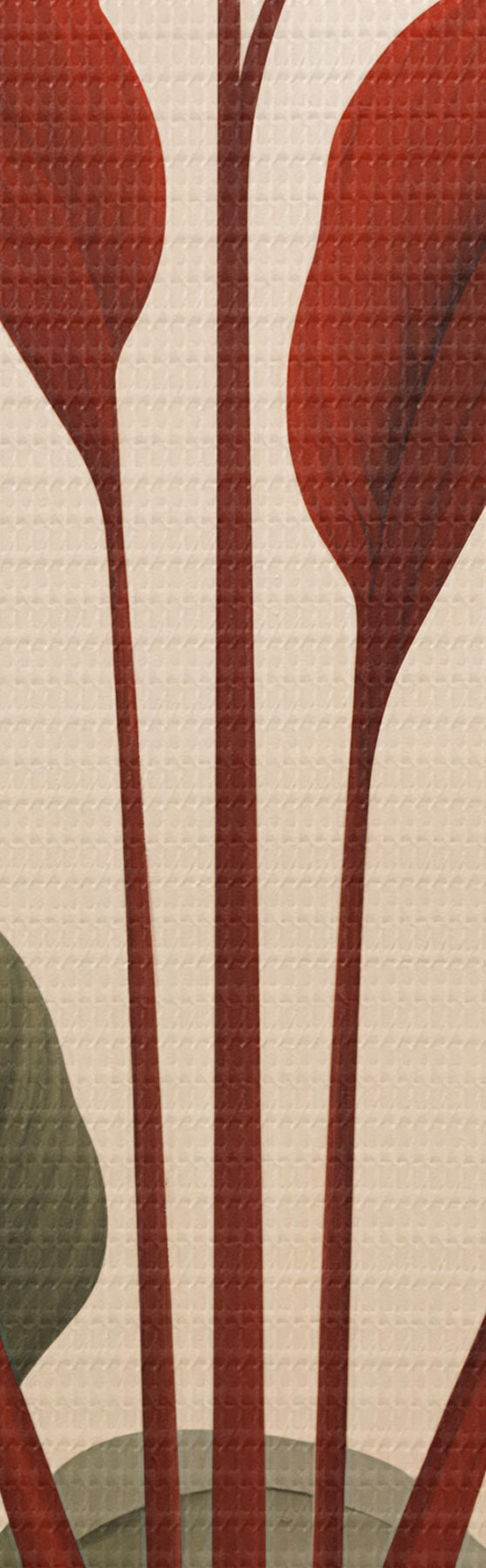 murales de pared Plantas abstractas en macetas con grandes hojas verdes y rojas delante de un arco de color crema. s47033