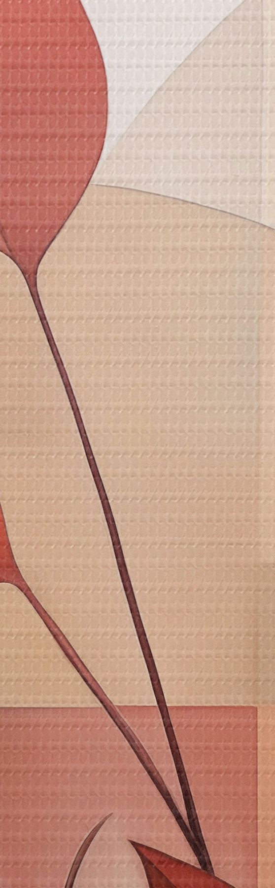 murales de pared Planta abstracta con hojas rojas sobre un fondo de formas geométricas y colores suaves y apagados. s47040