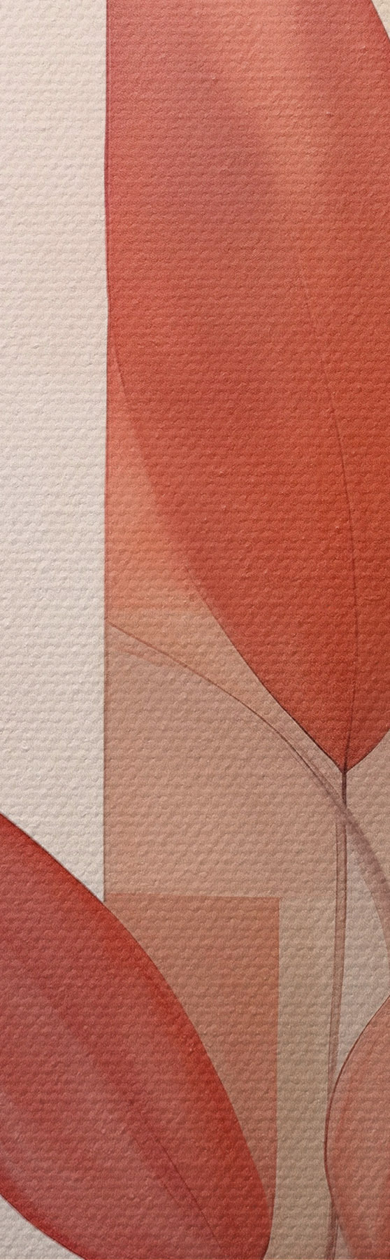 murales de pared Planta abstracta con hojas rojas sobre un fondo de formas geométricas y colores suaves y apagados. s47041