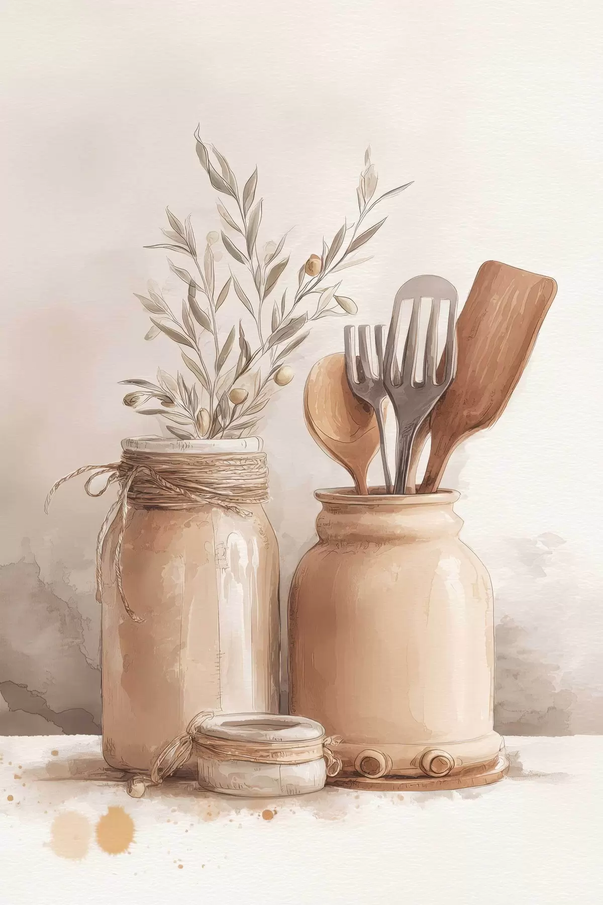 Cuadros Naturaleza muerta en la cocina en estilo acuarela Nr s47125
