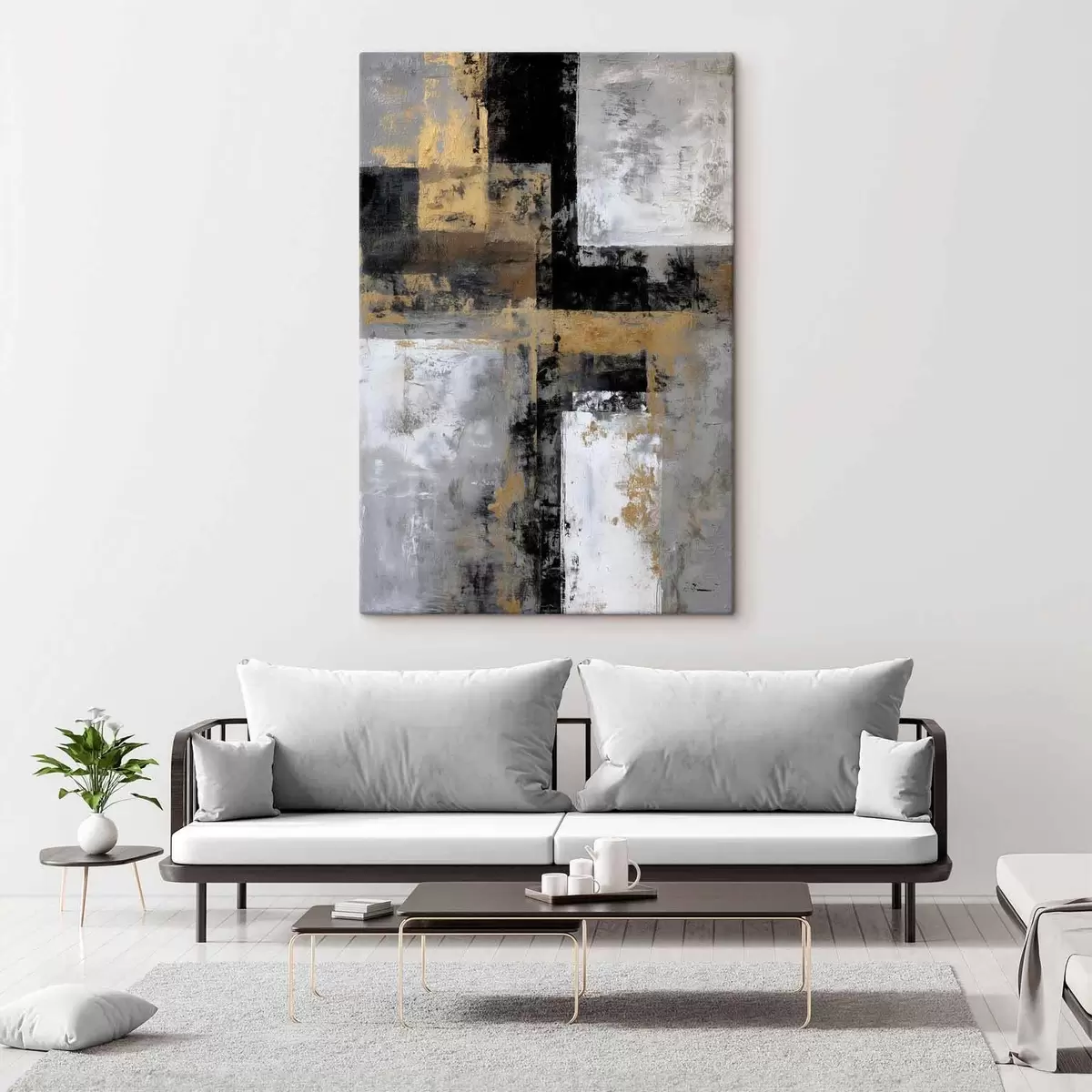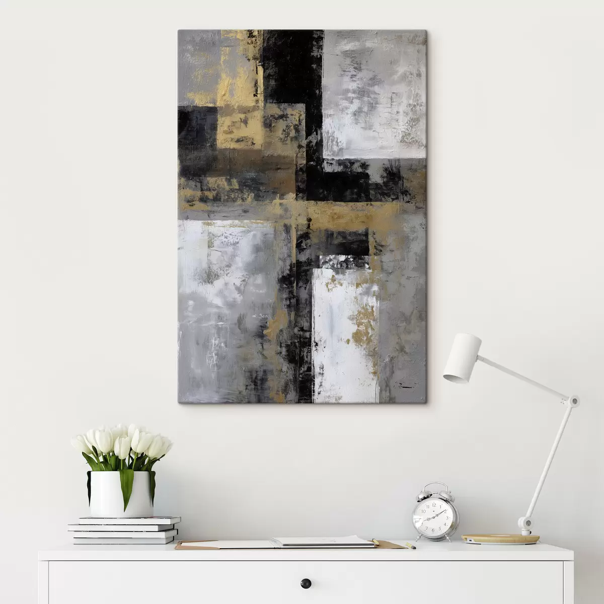 Cuadros abstracción textural contemporánea en tonos negros, grises y blancos Nr s47139