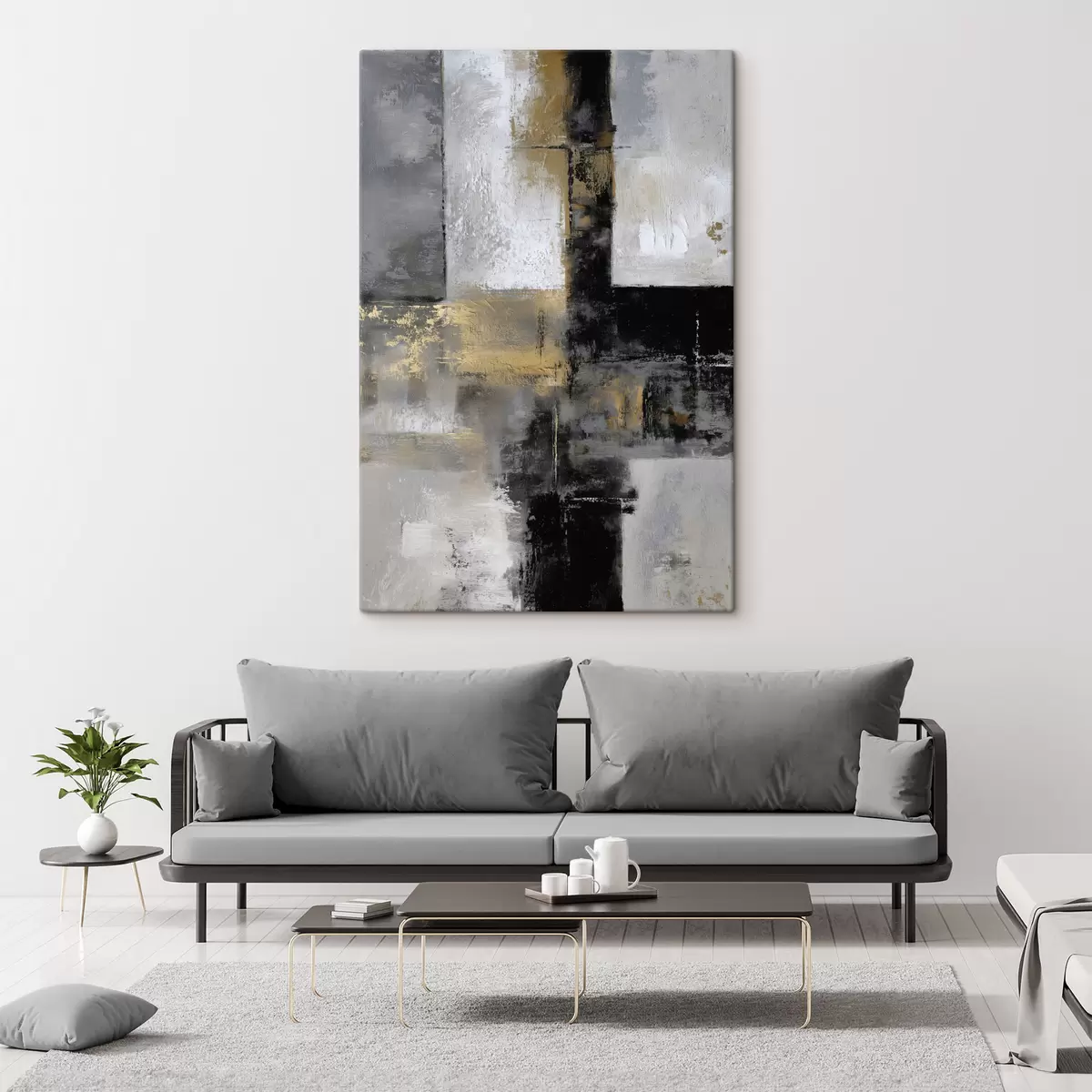 Cuadros abstracción textural contemporánea en tonos negros, grises y blancos Nr s47140