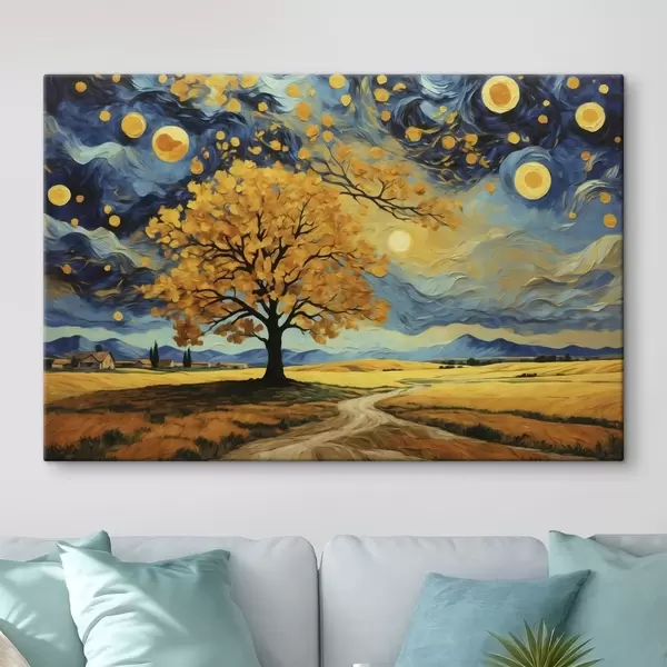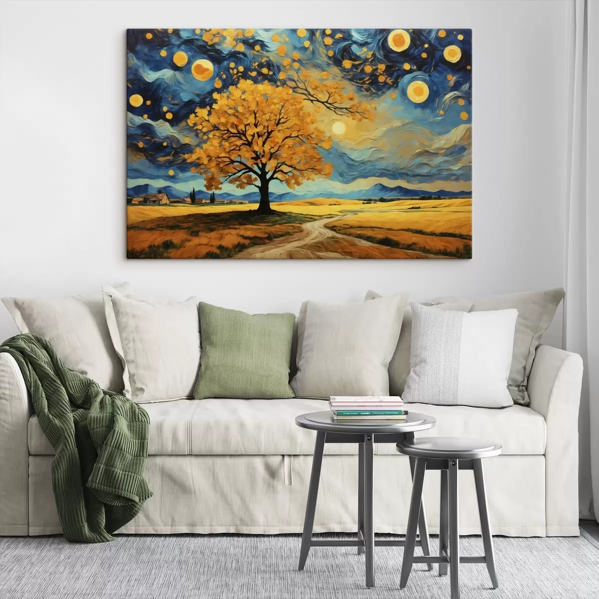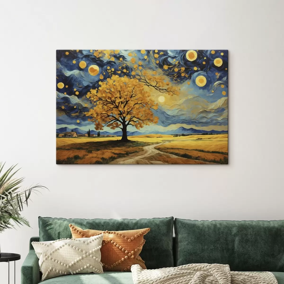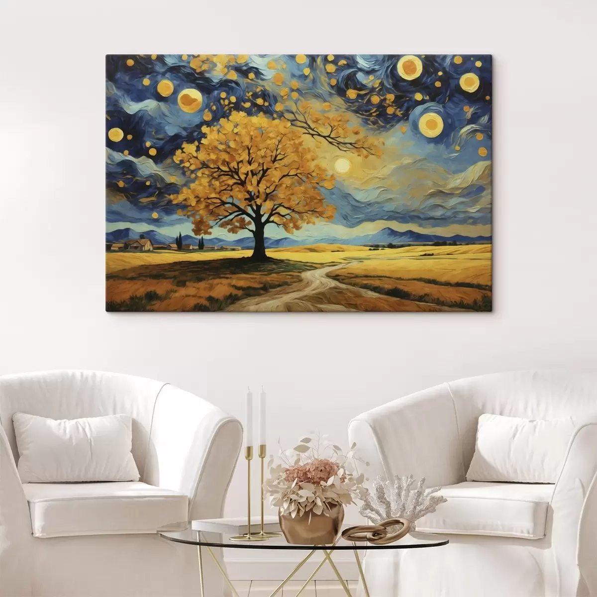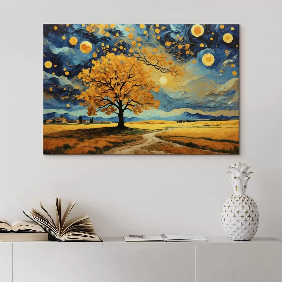 Cuadros Paisaje con un árbol y un cielo estrellado intenso Nr s47255