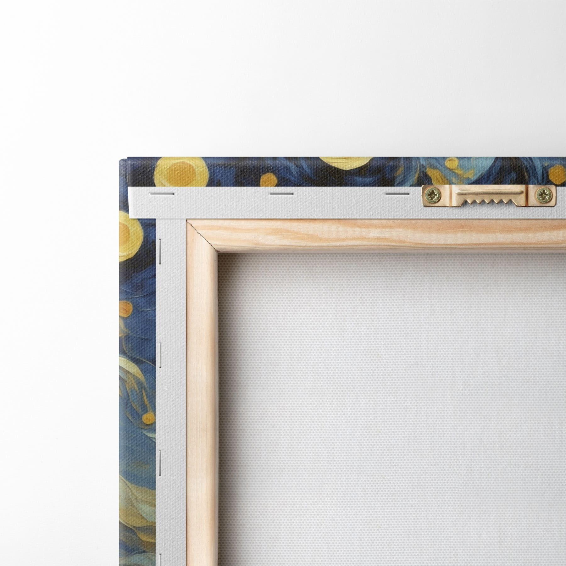 Vendemos cuadros en bastidor: se trata de un marco de madera sobre el que se extiende el lienzo. Este cuadro no necesita marco; puedes colgarlo directamente en la pared.
