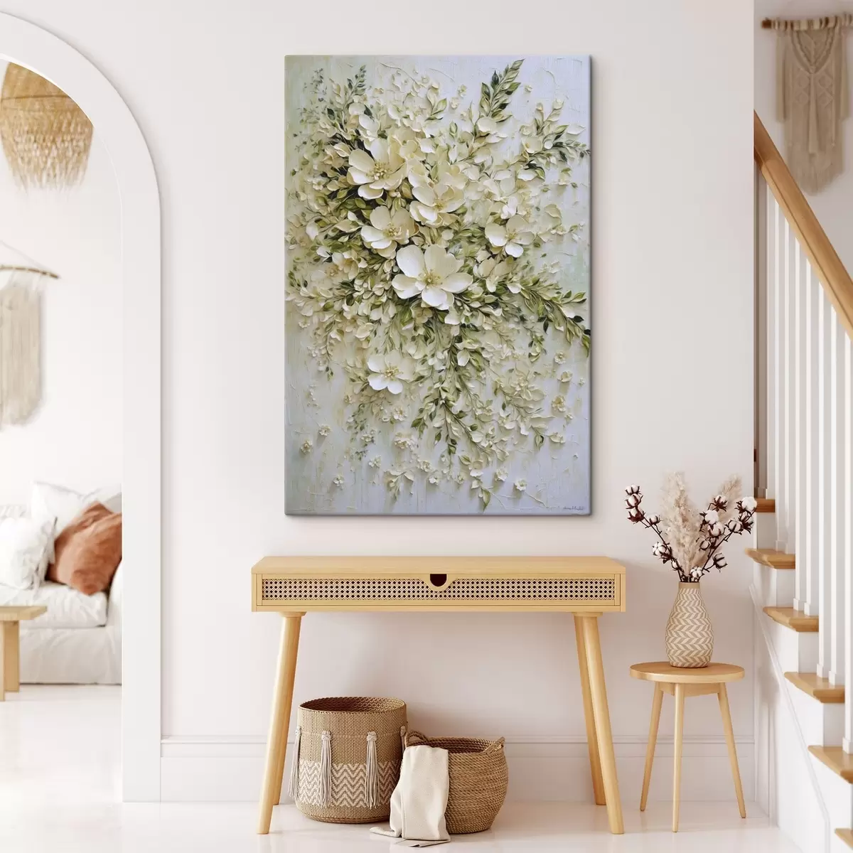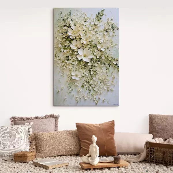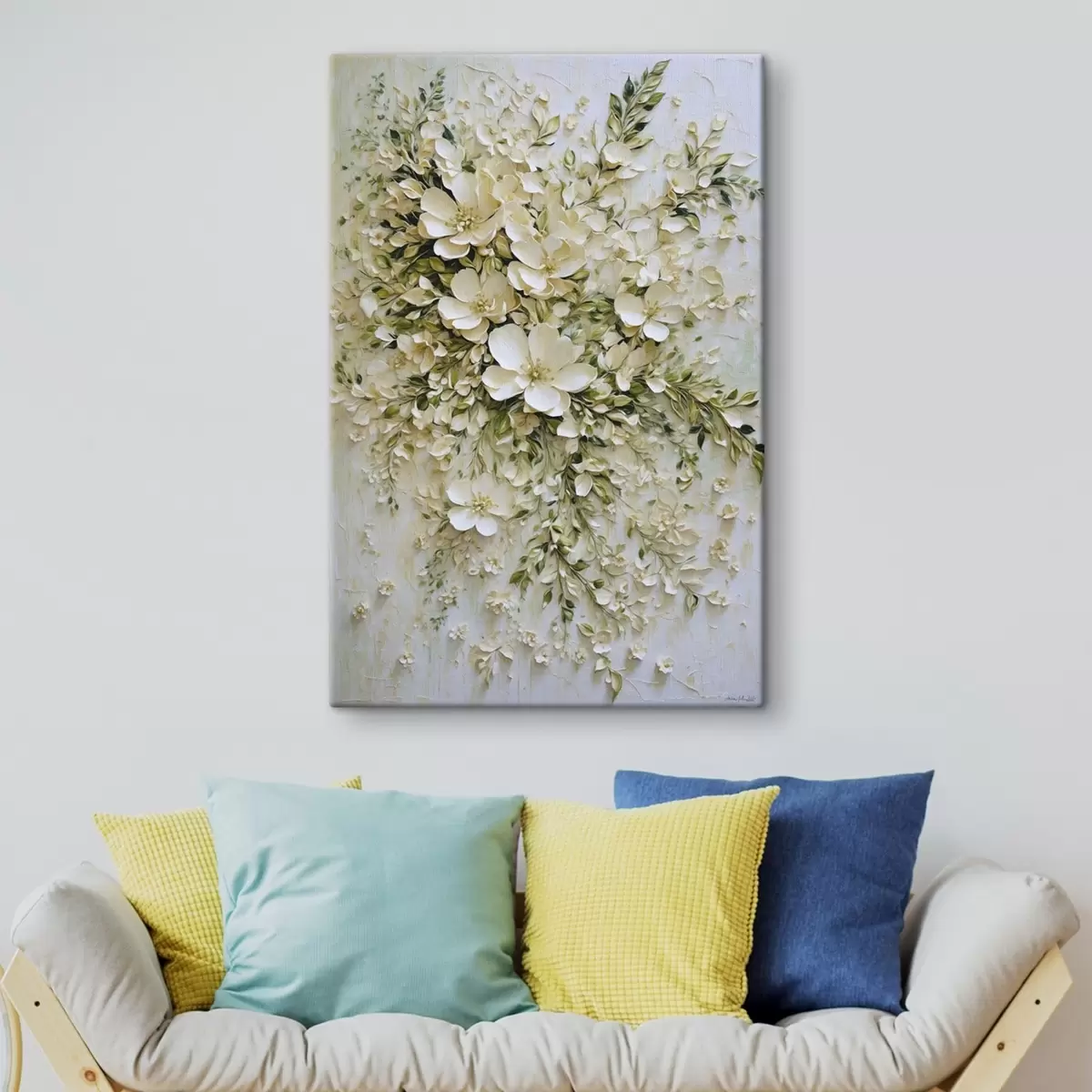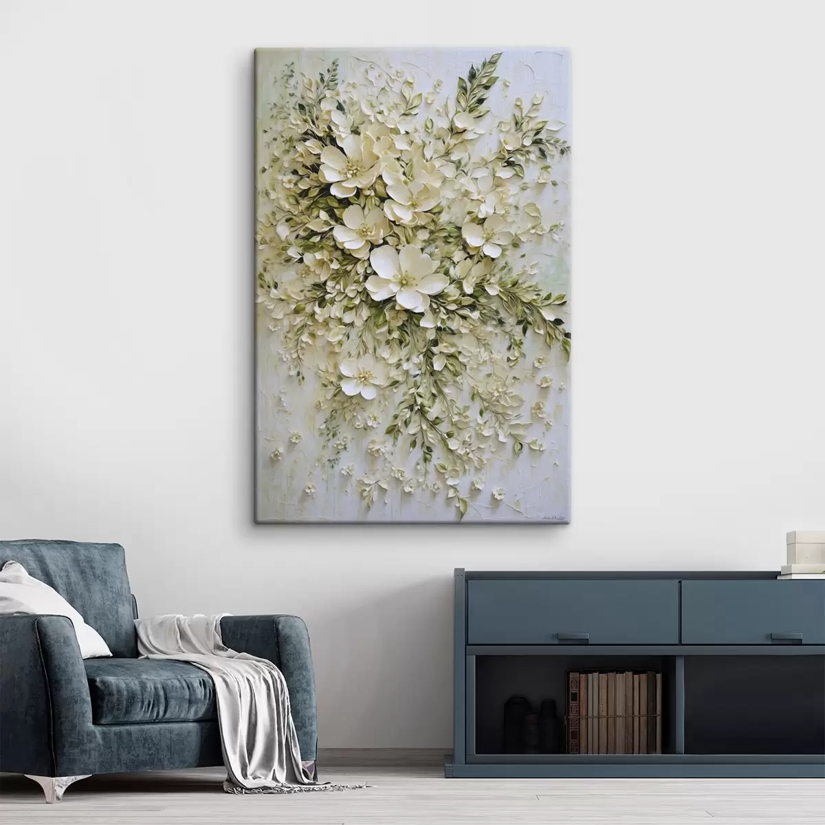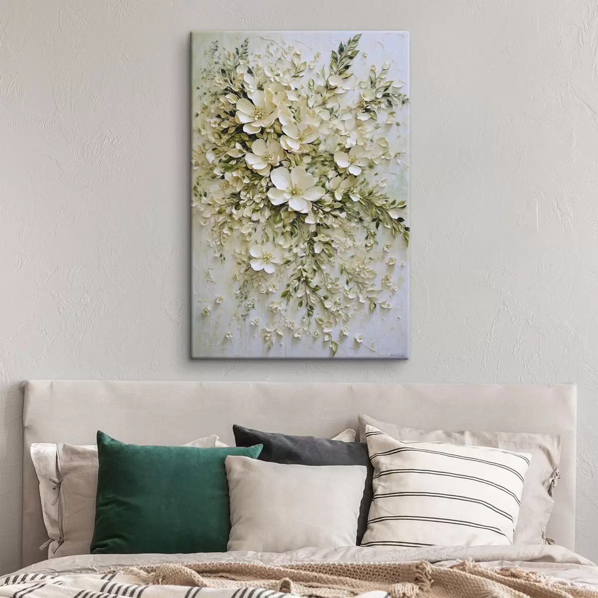 Cuadros Gran composición de flores y hojas color crema. Nr s47267
