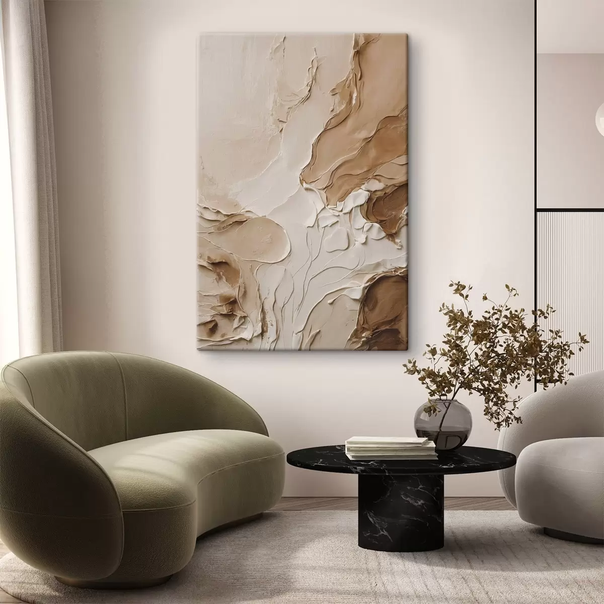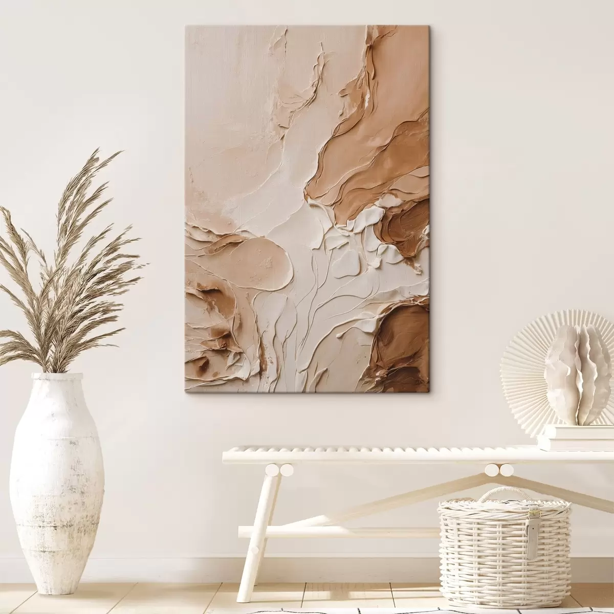 Cuadros Trazos texturizados en color beige con líneas suaves. Nr s47274