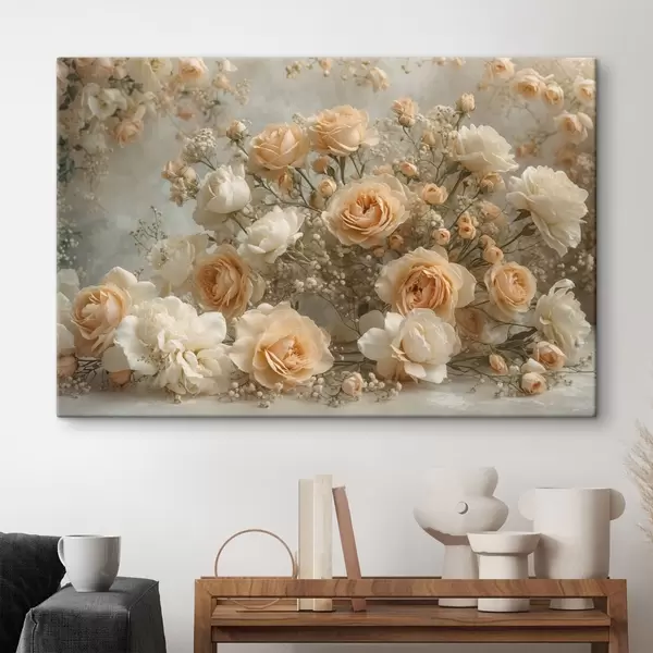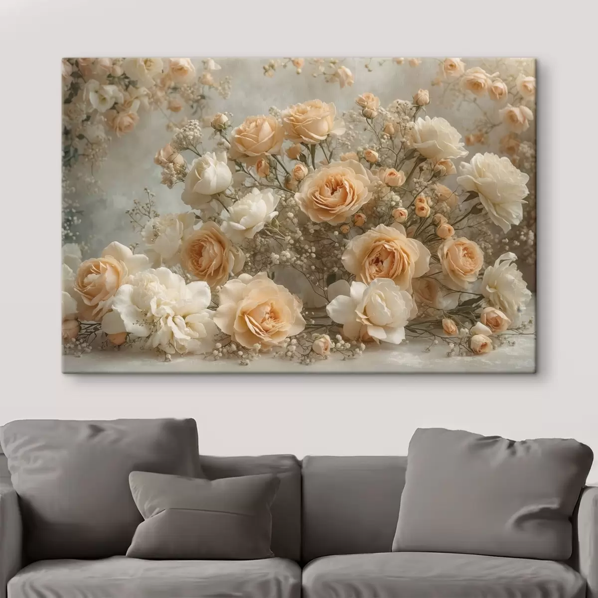 murales de pared Delicadas rosas color crema en un arreglo grande s47279
