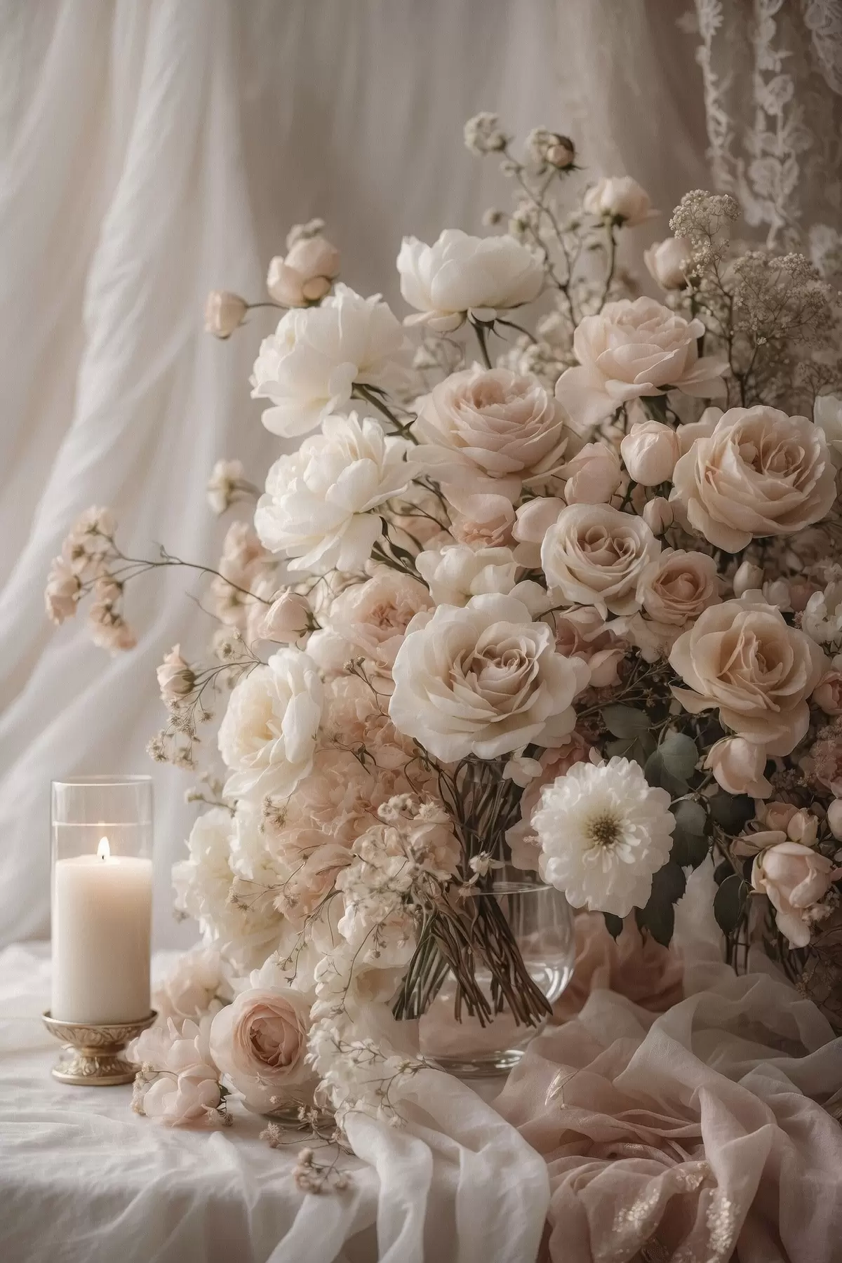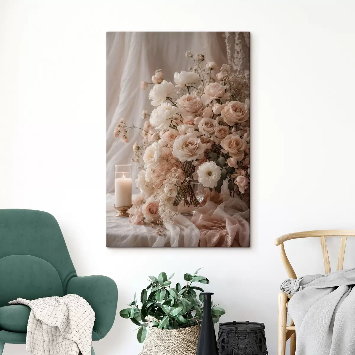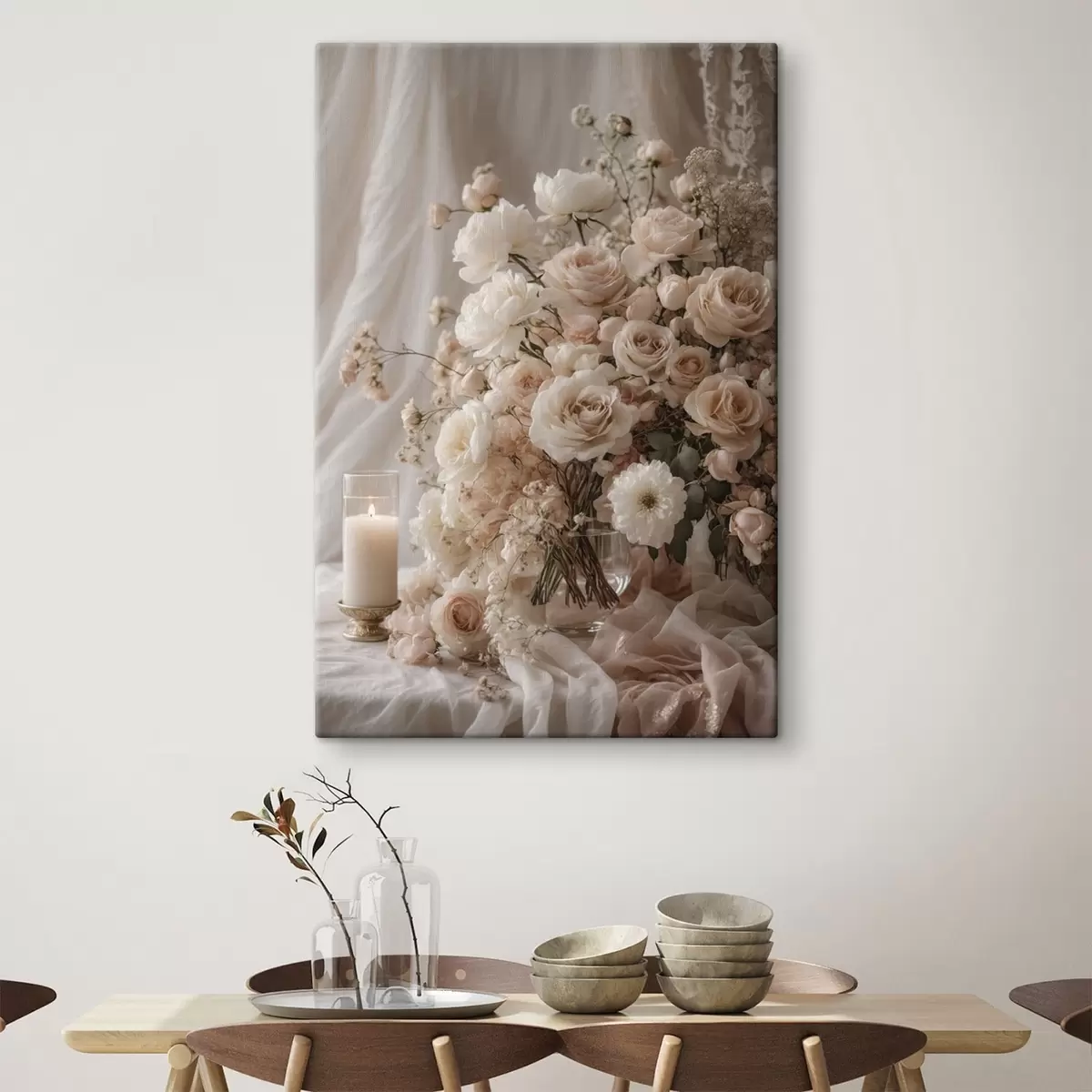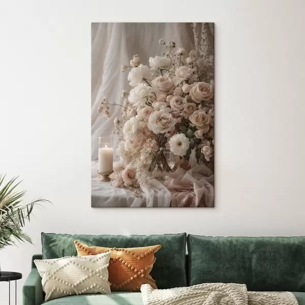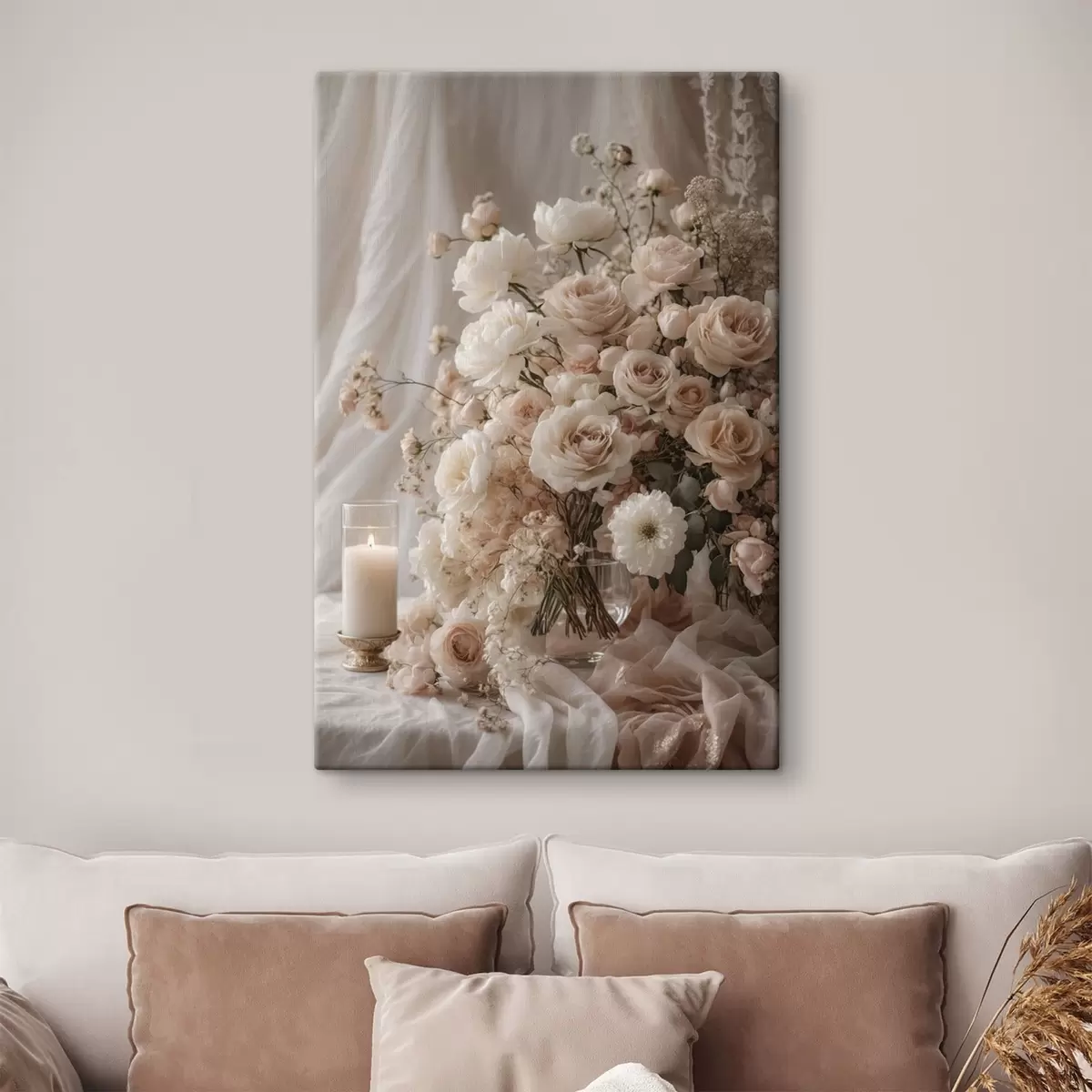 Cuadros Flores de crema junto a una vela encendida Nr s47281