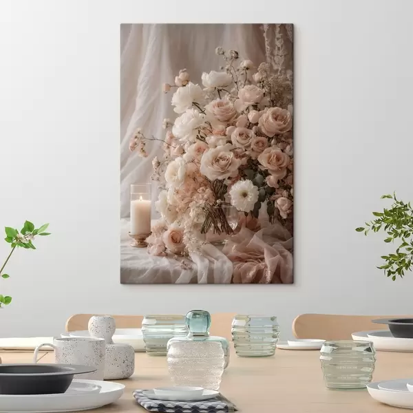 Cuadros Flores de crema junto a una vela encendida Nr s47281