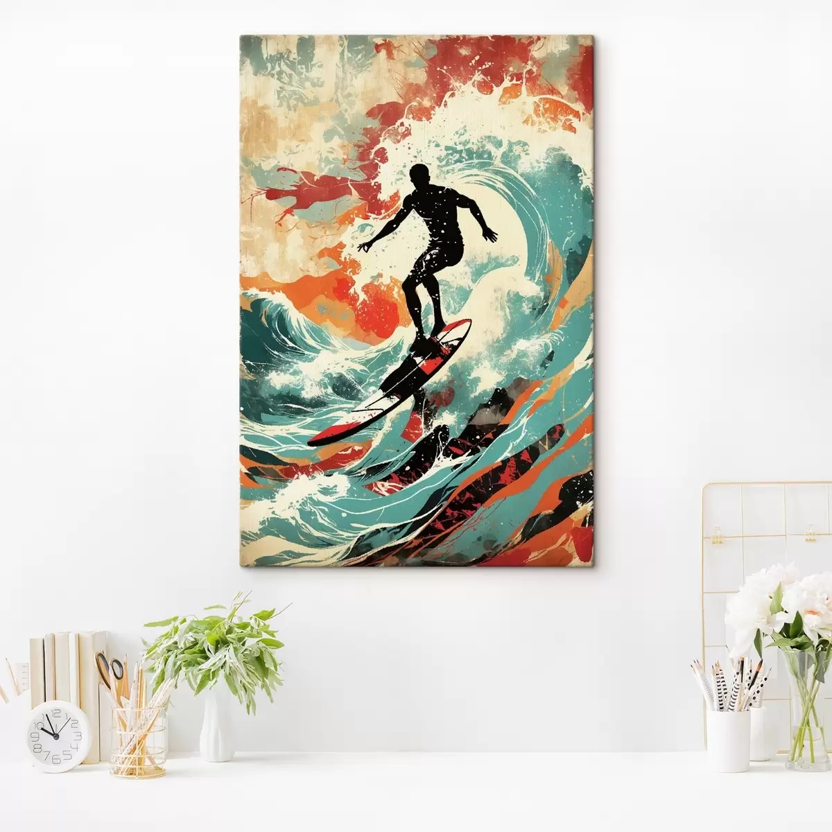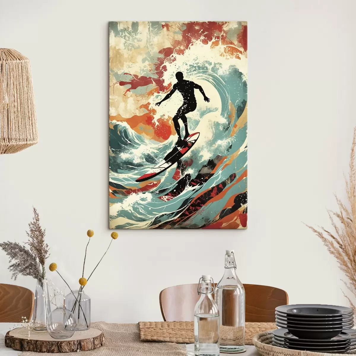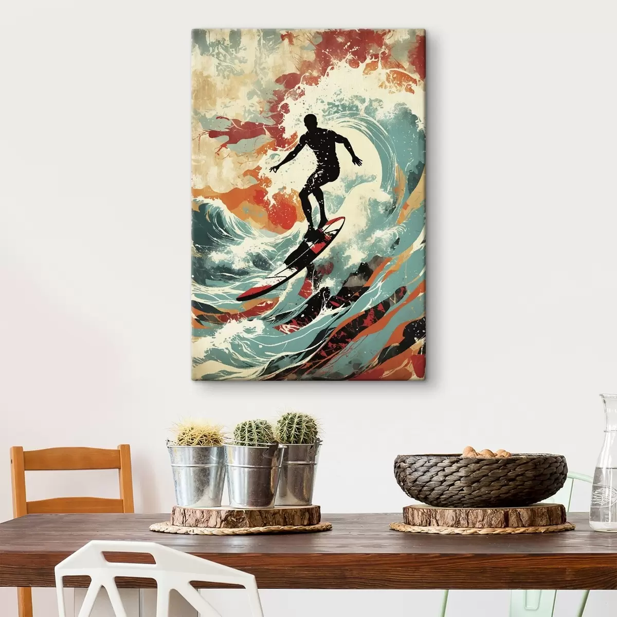 Cuadros Silueta de surfista sobre olas en colores vivos Nr s47284