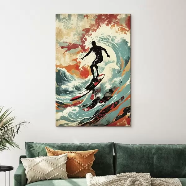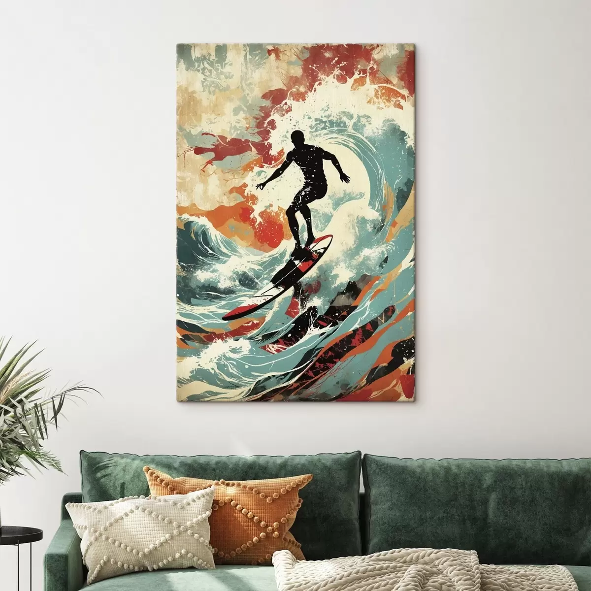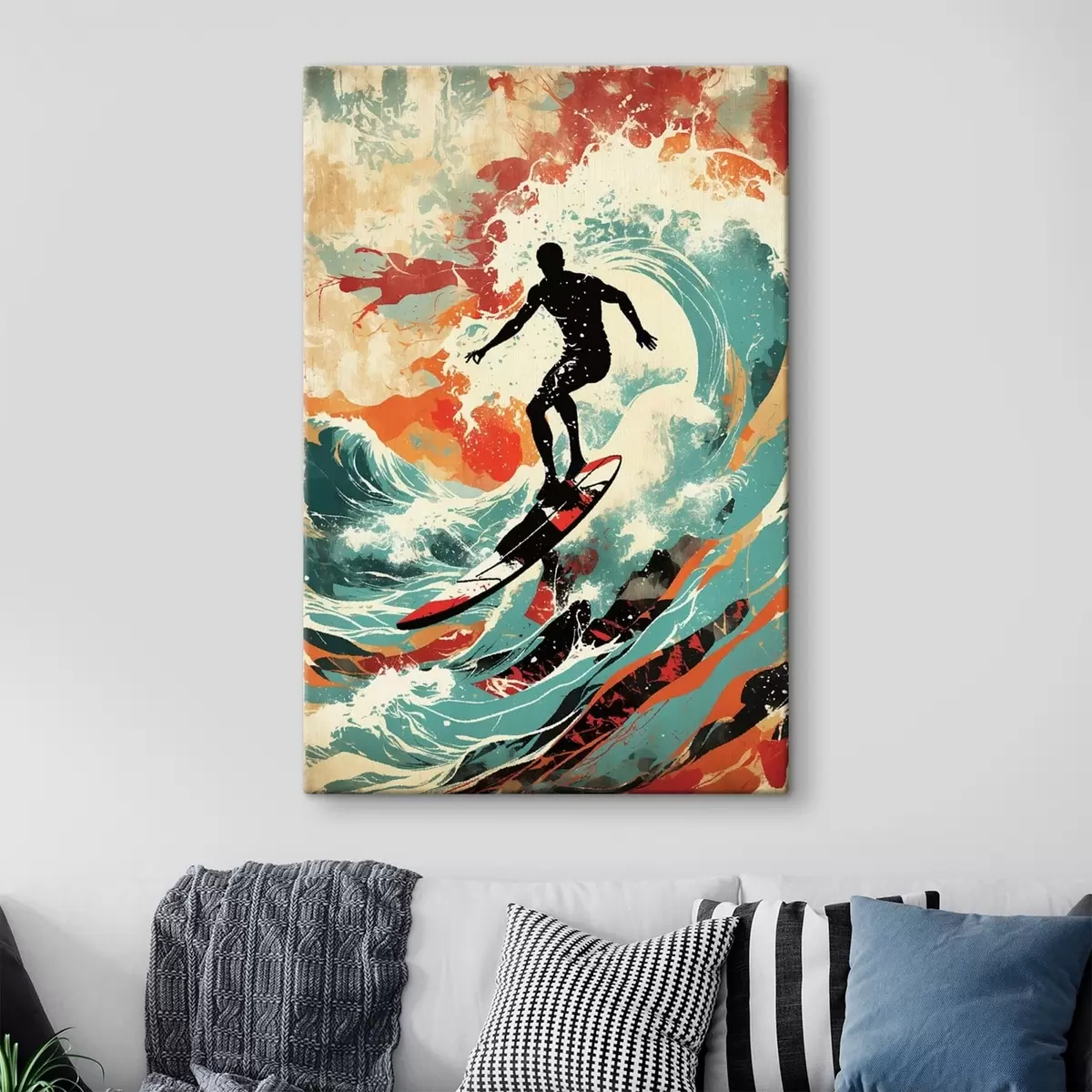Cuadros Silueta de surfista sobre olas en colores vivos Nr s47284
