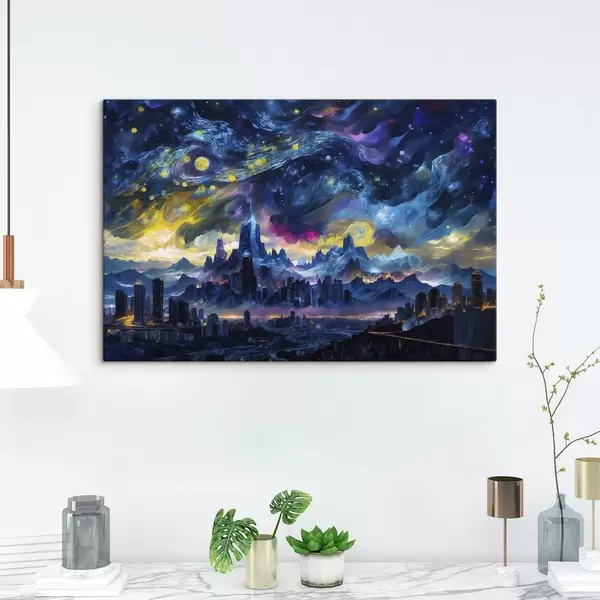 Cuadros Ciudad fantástica bajo un cielo nocturno resplandeciente Nr s47288