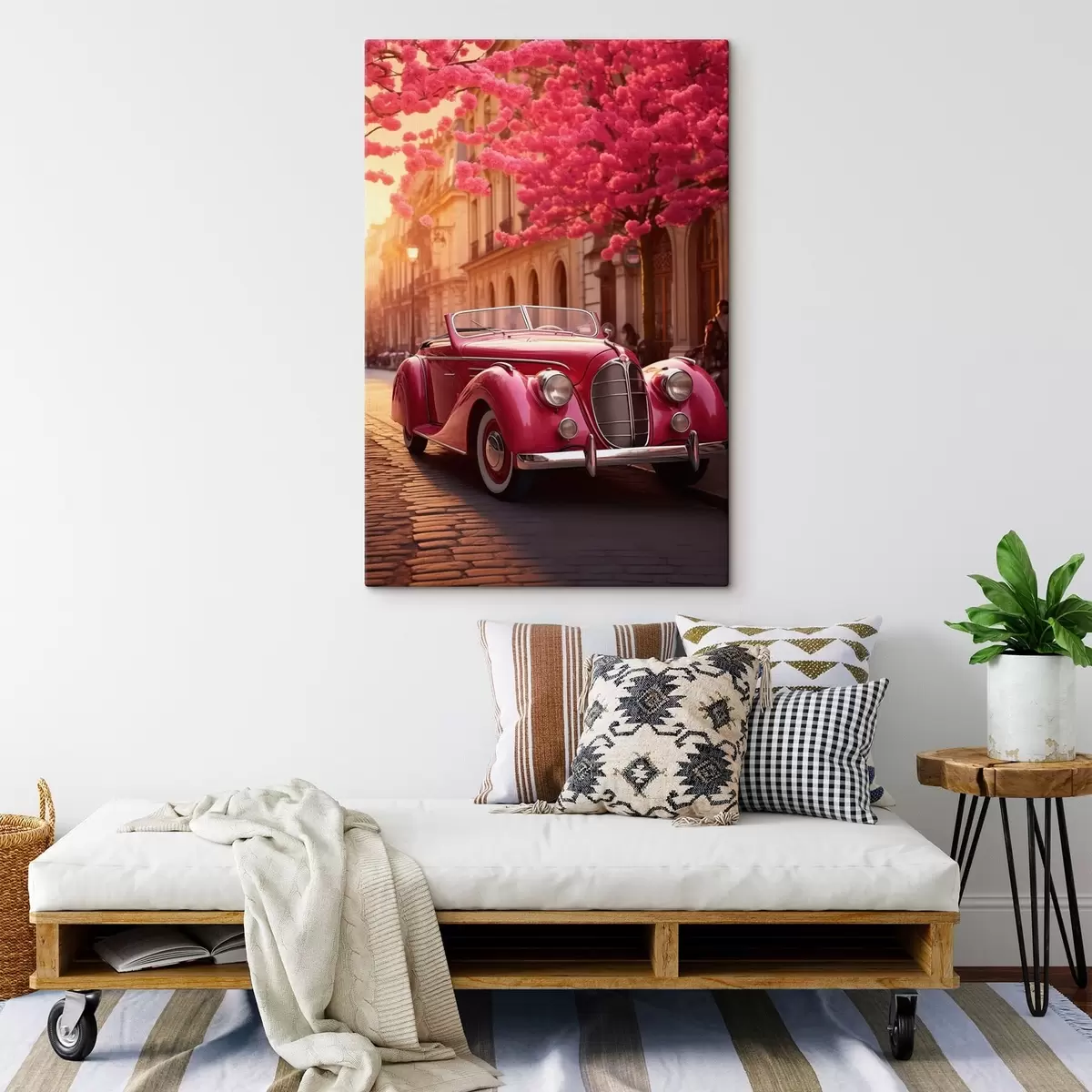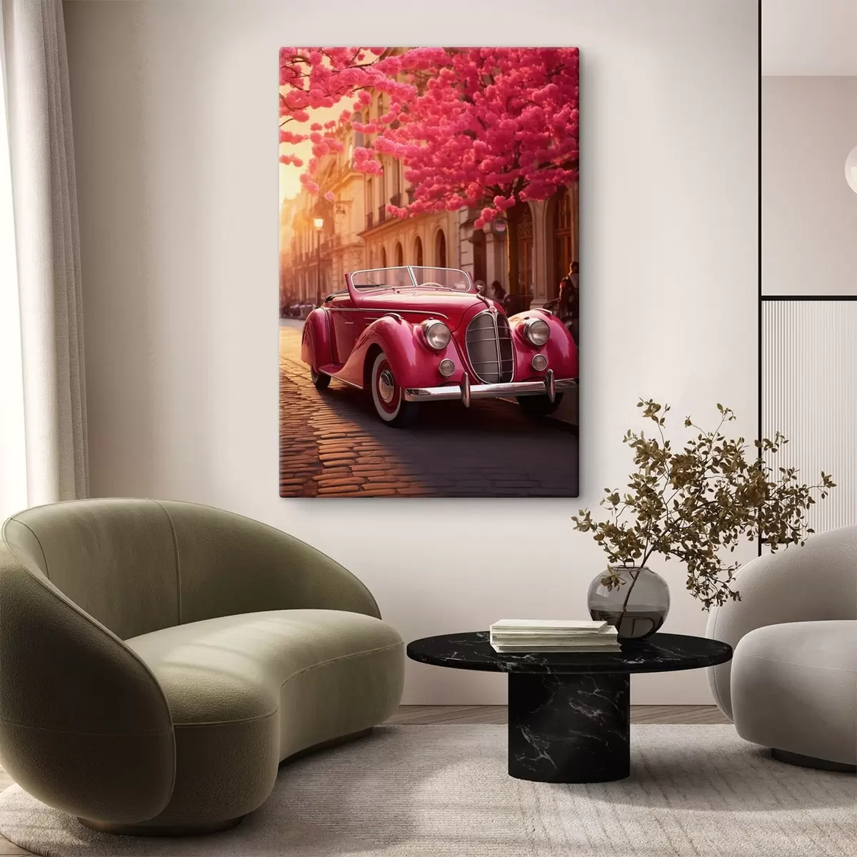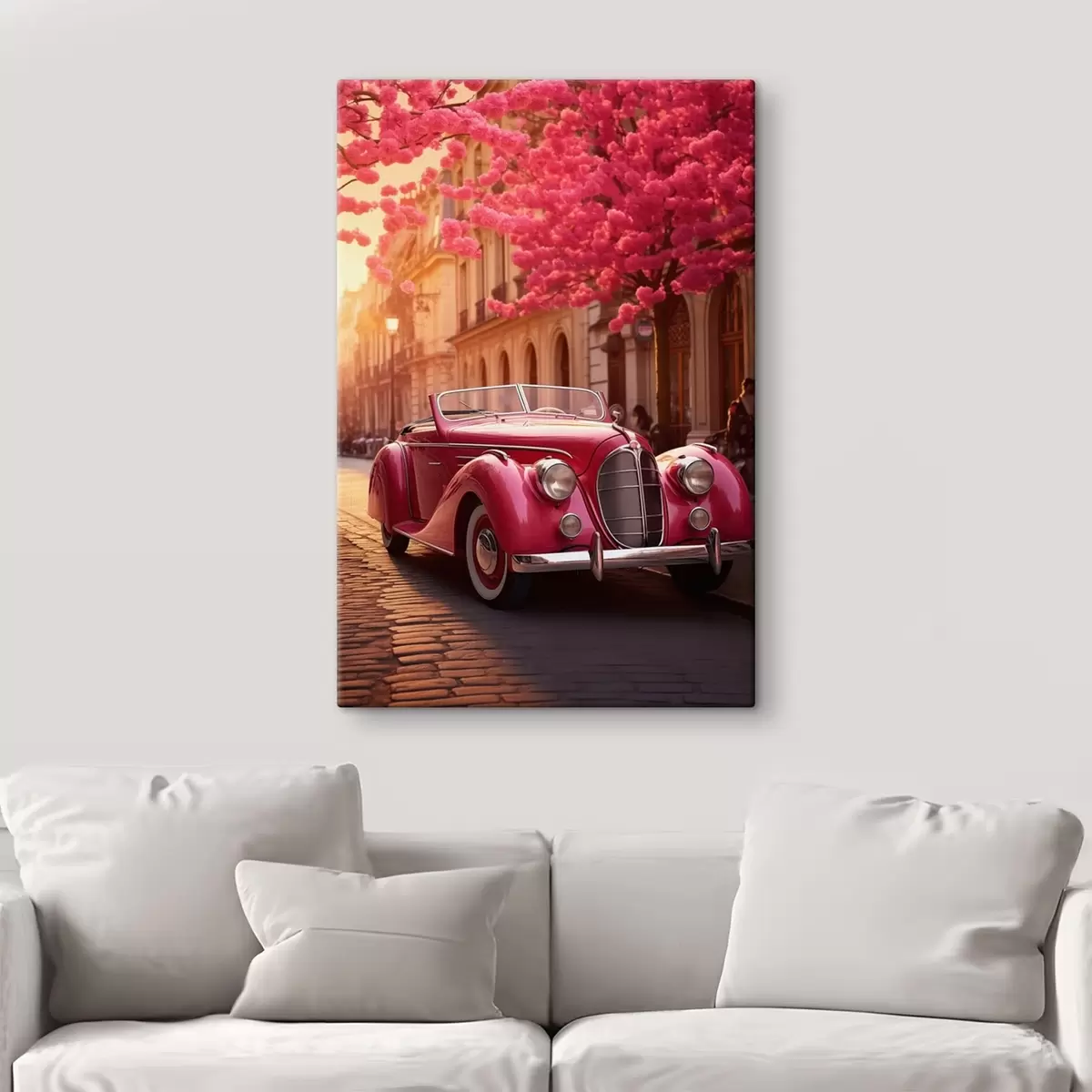 Cuadros Coche rosa bajo árboles en flor Nr s47295