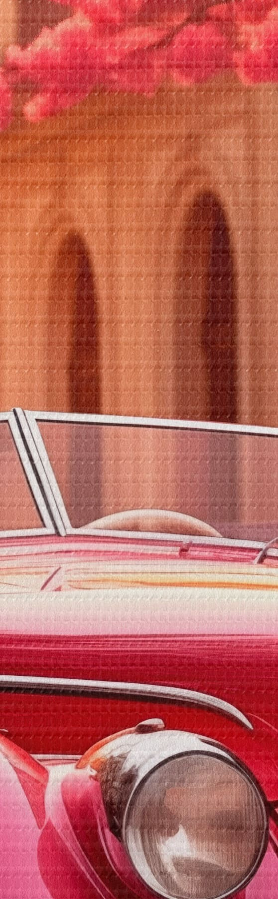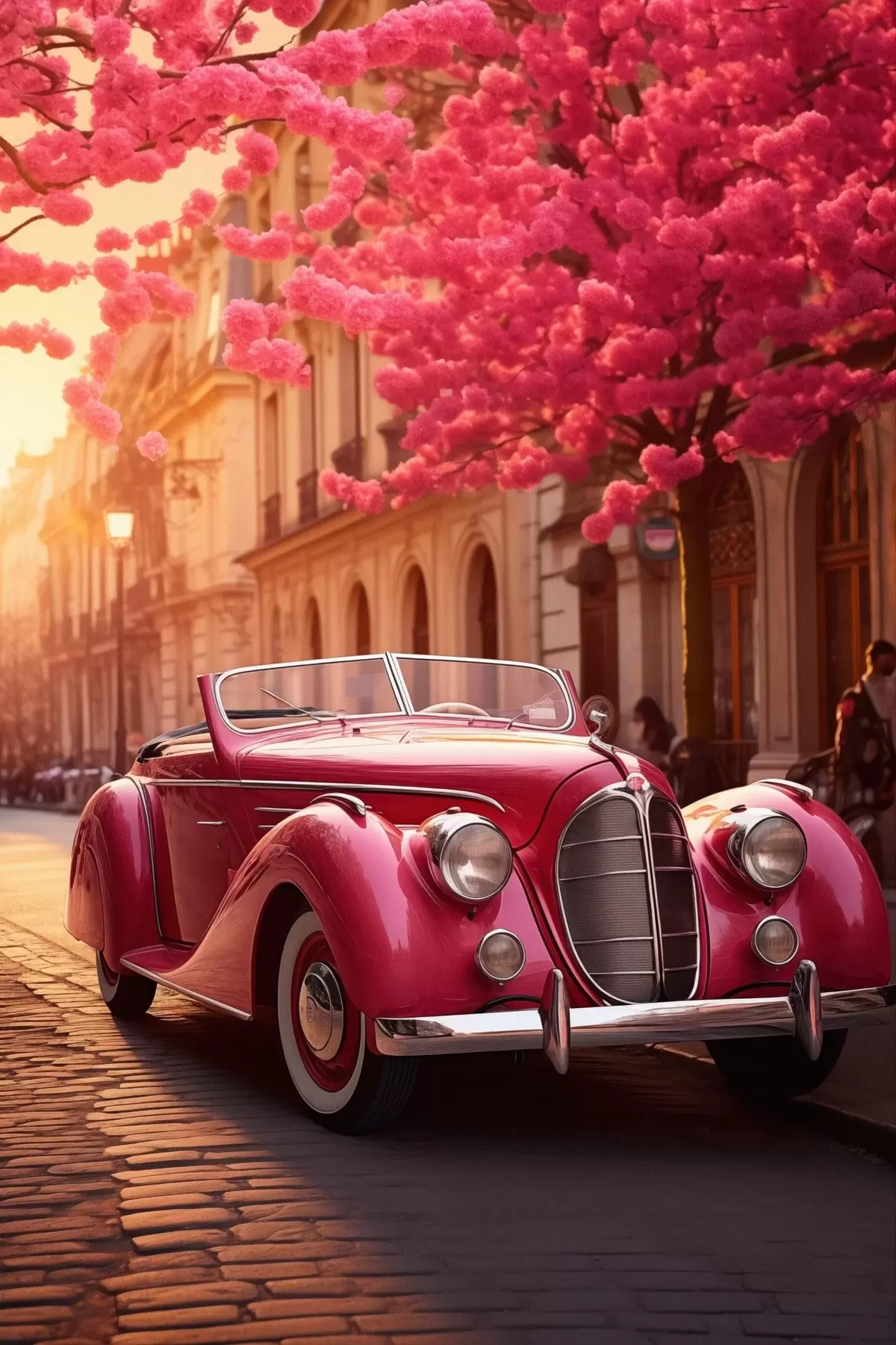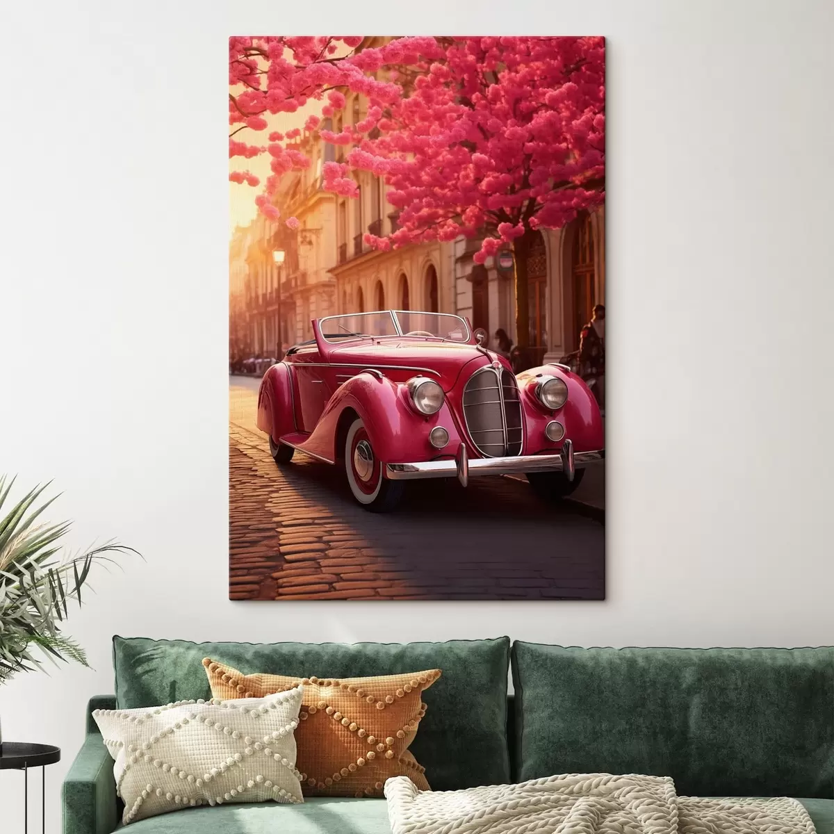 Cuadros Coche rosa bajo árboles en flor Nr s47295