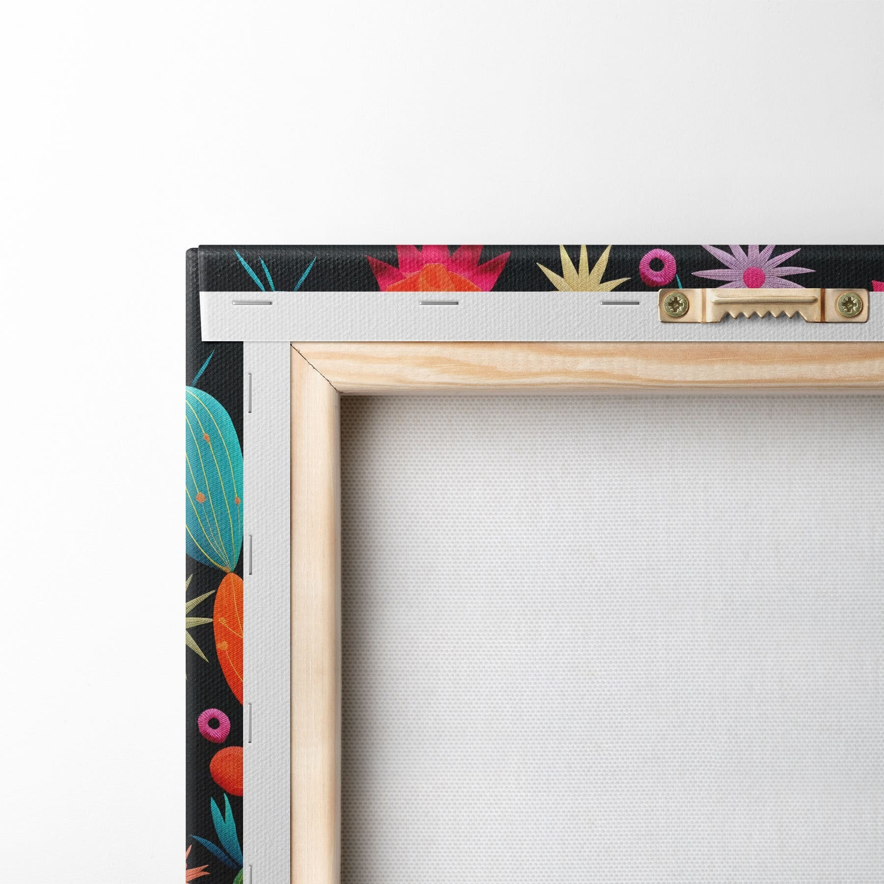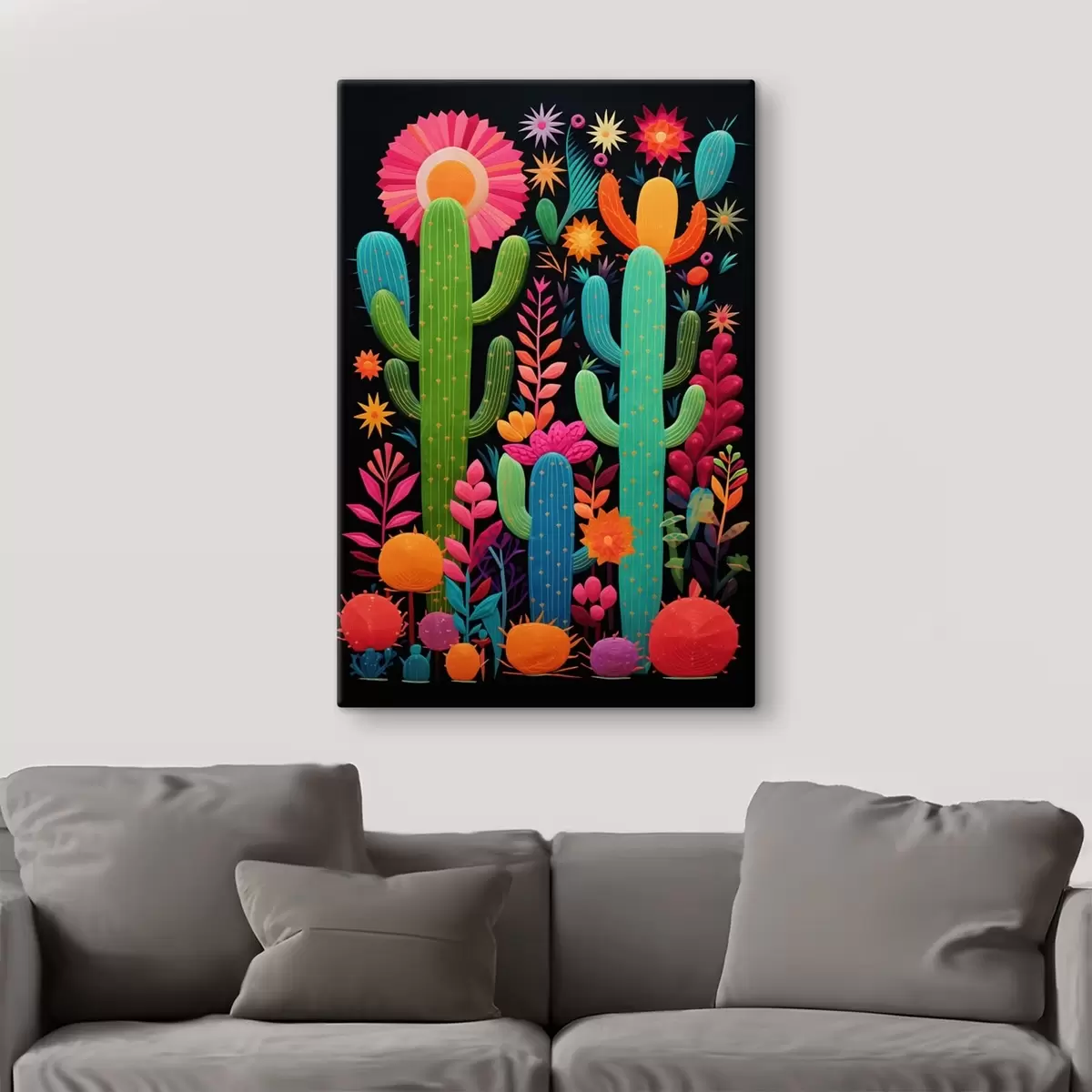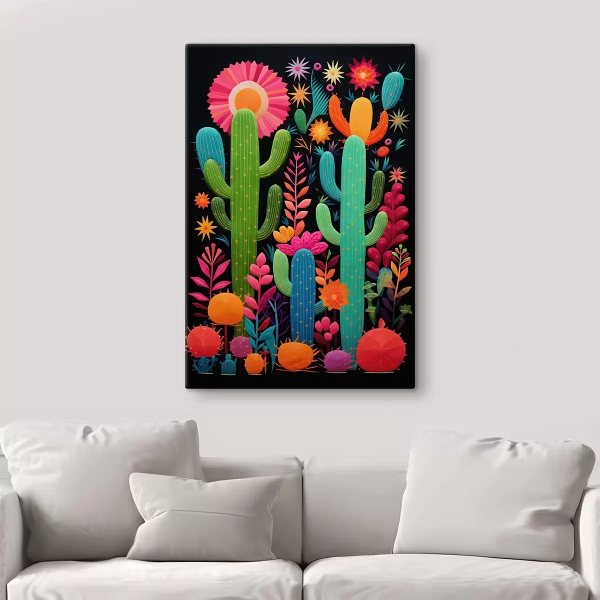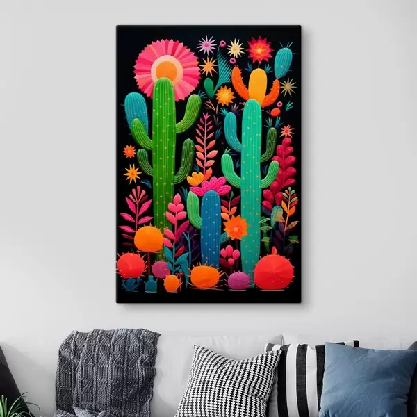 Cuadros Cactus y flores vibrantes sobre fondo oscuro Nr s47297