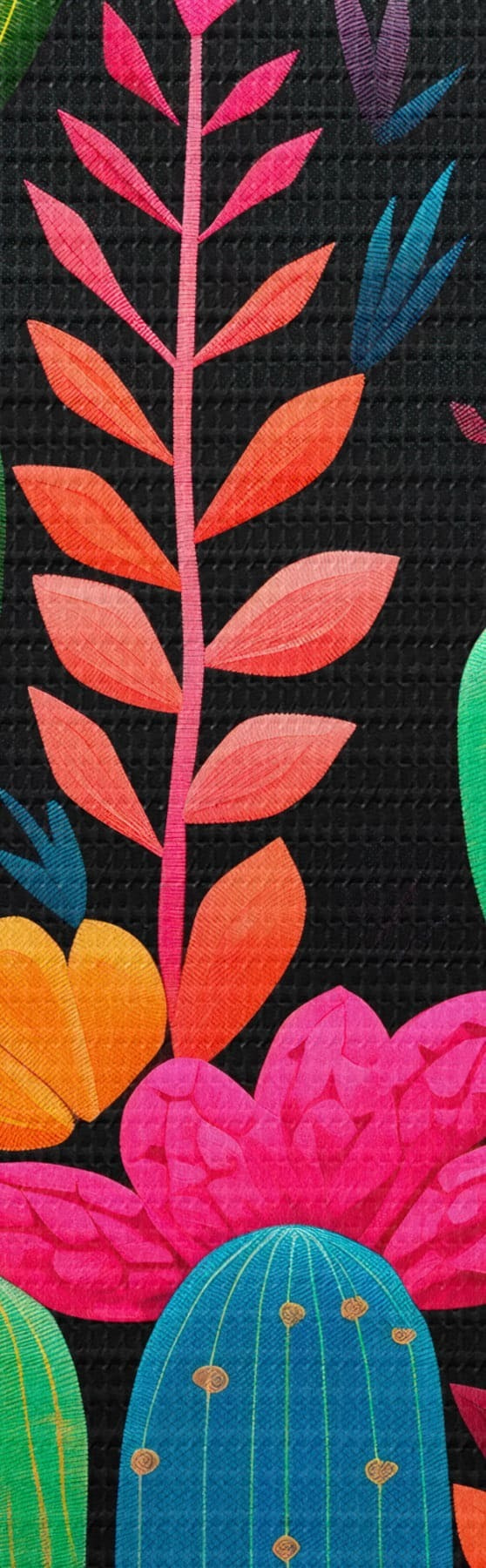 murales de pared Cactus y flores vibrantes sobre fondo oscuro s47297