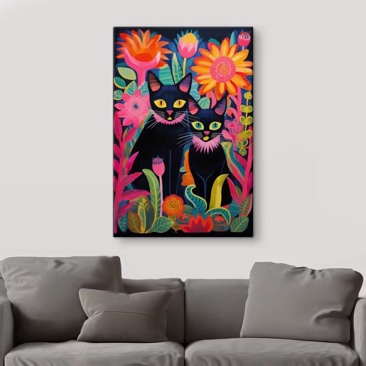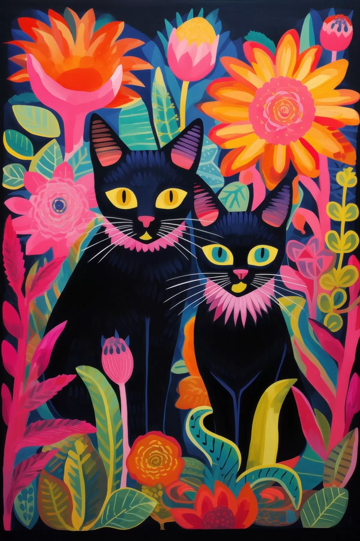 murales de pared Dos gatos negros entre flores brillantes s47299