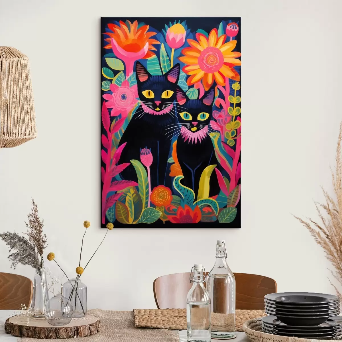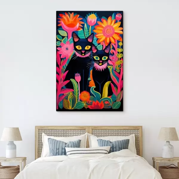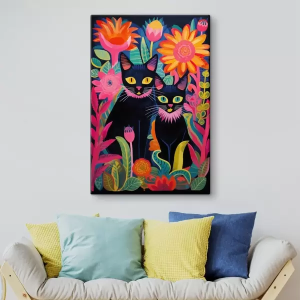 Cuadros Dos gatos negros entre flores brillantes Nr s47299