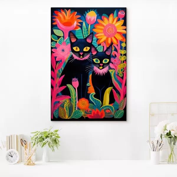 Cuadros Dos gatos negros entre flores brillantes Nr s47299