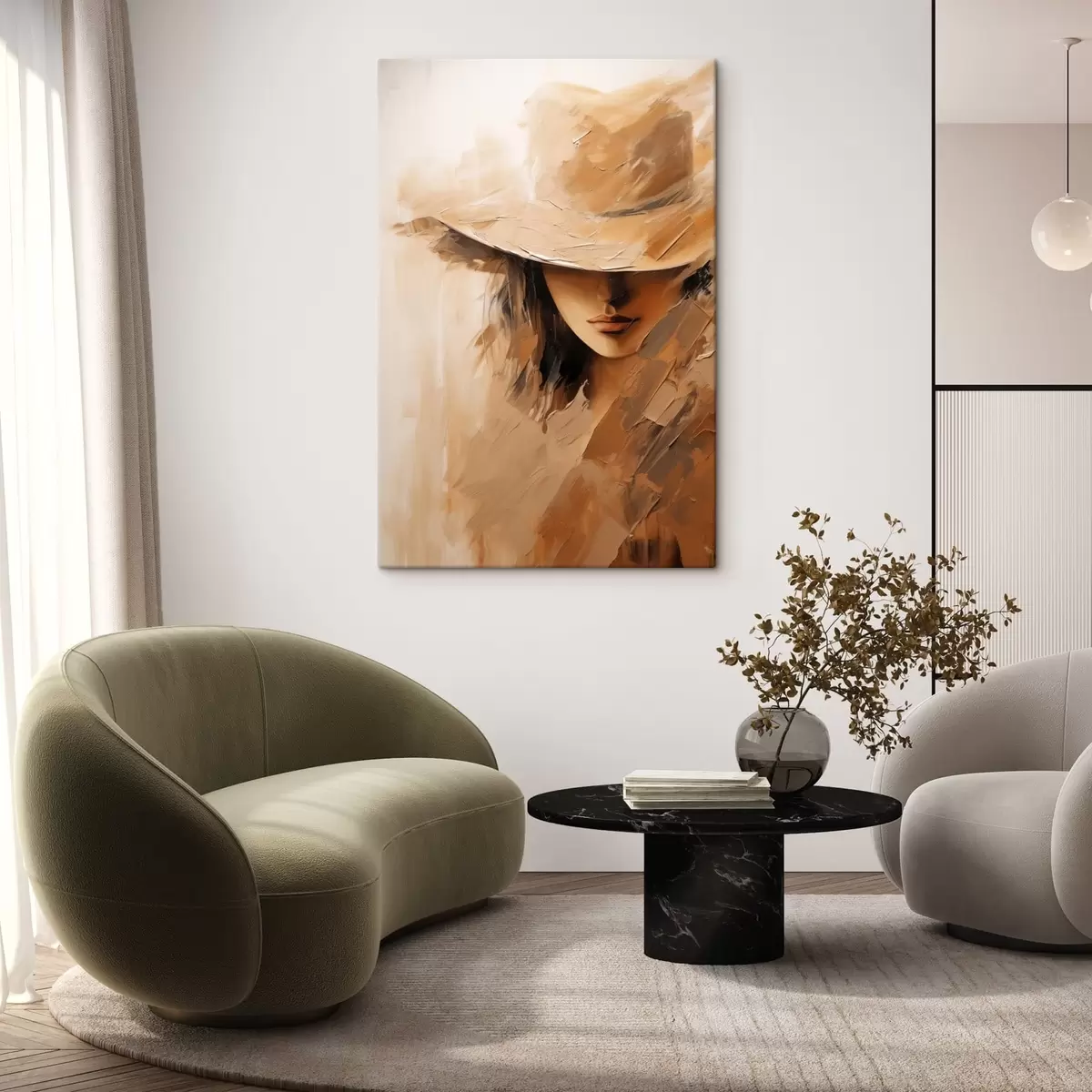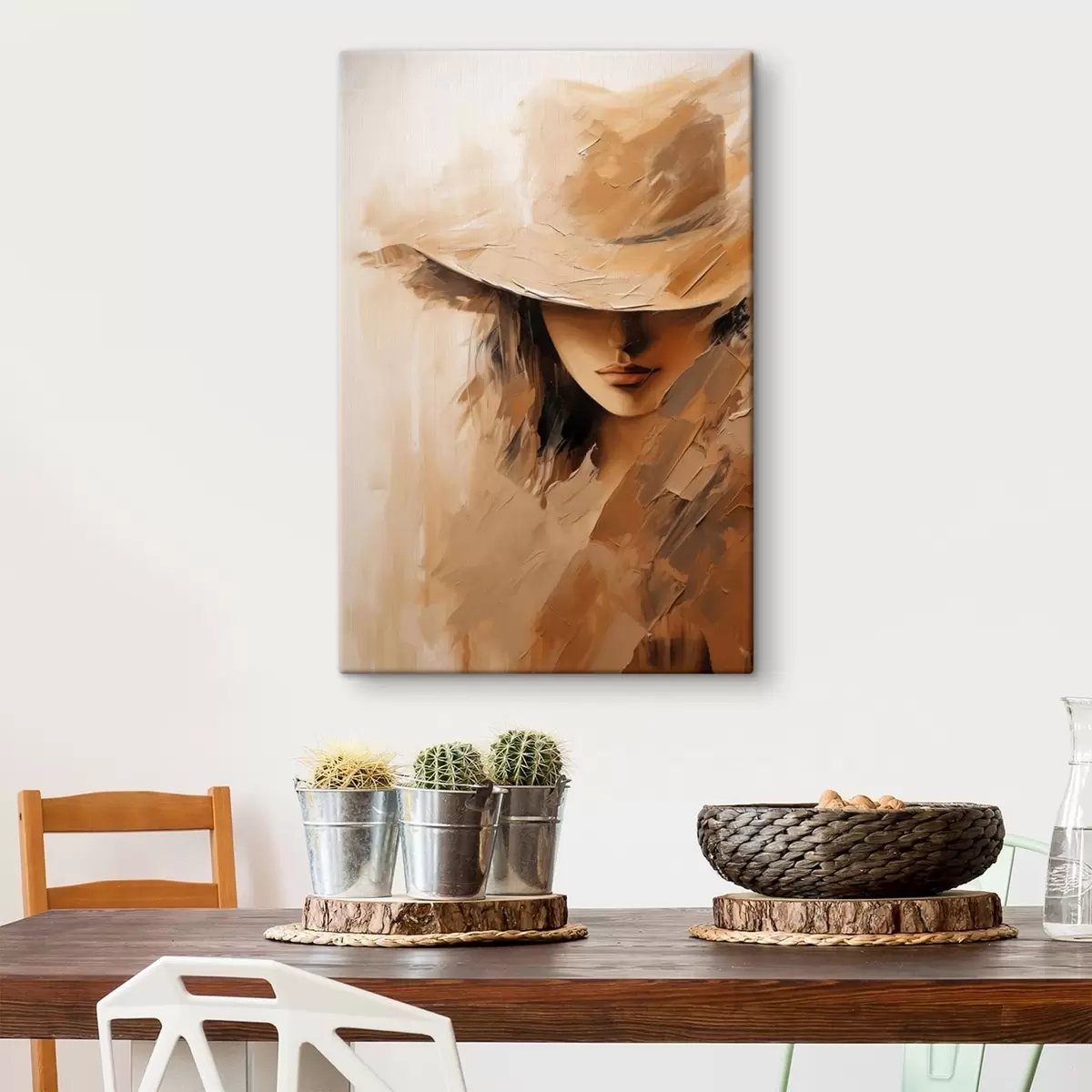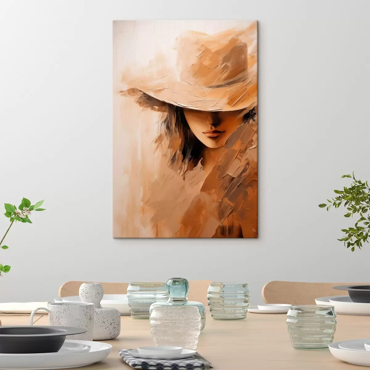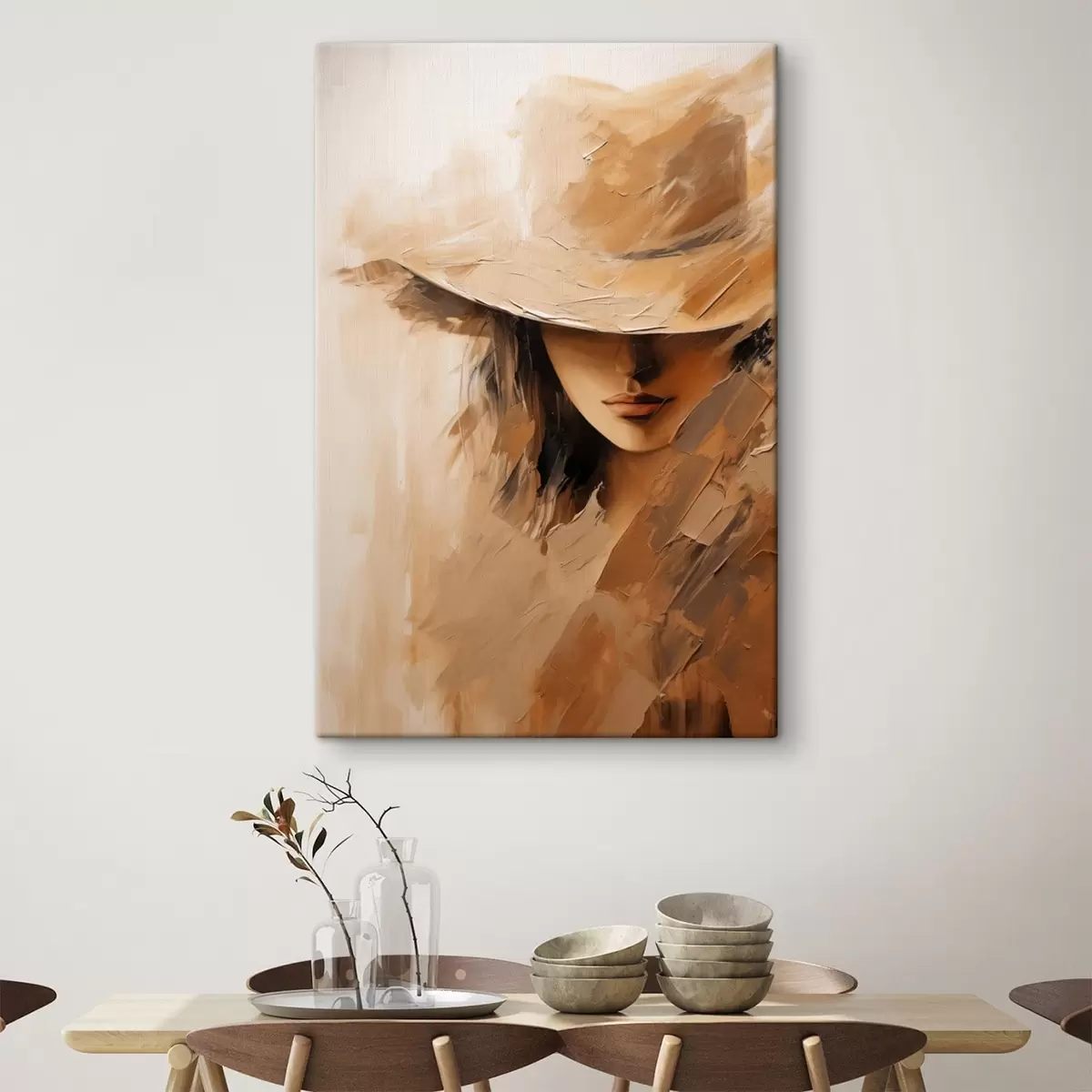 Cuadros Mujer con sombrero pintada con pinceladas cálidas y texturizadas. Nr s47315